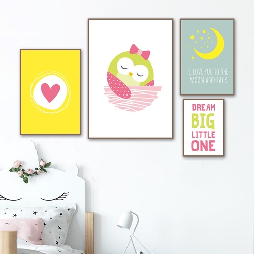 Dropship Owl Moon Heart Big Dream Wall Art Canvas