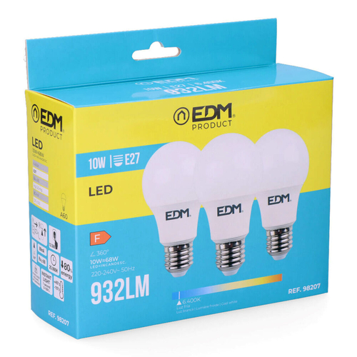 If you like to take care of every detail in your home and own the latest products that will make your life easier, purchase Pack of 3 LED bulbs EDM F 10 W E27 810 Lm Ø 6 x 10,8 cm (6400 K) at the best price.