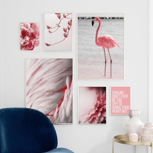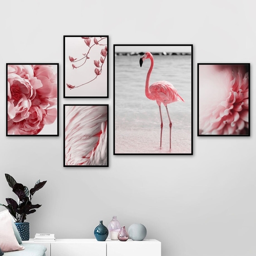 Dropship Peony Flower Flamingo Feather Sea Wall Art Canvas