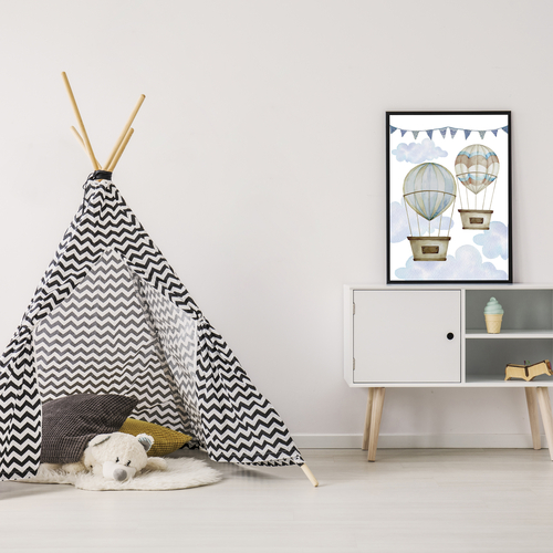 Our playful posters are made in Lithuania and framed by high quality wooden frames. Posters are designed to decorate childrens bedroom and bring coziness to the place. The poster can be hung above the crib and serve as beautiful decor detail. We created posters with some of the most beloved characters by kids so you can choose from variety of colorful animals and other animated heroes. You can choose frame color from black or white to match the room decor.