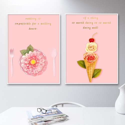 Dropship Poster Nordic Pink Flower Canvas Painting