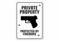 Enhance your property’s security with our Private Property Protected by Firearms Caution Sign. This eye-catching sign not only serves as a warning but also adds a decorative touch to your property. Made from high-quality aluminum, it is designed to withstand the elements, ensuring that your message remains clear and visible for years to come.
