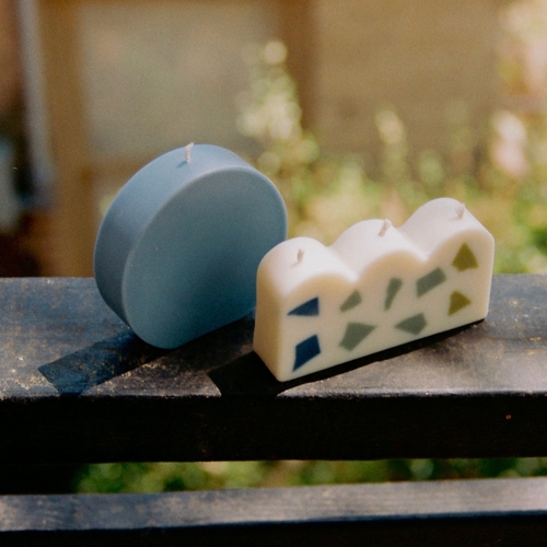 | Unscented vegan soy wax pillar candles made without phthalates. The terrazzo pattern is created by embedding chunks of contrasting wax into a white base. Uniquely handcrafted, these candles will look beautiful as they burn or as long-term decor. Each candle is poured, buffed, washed, and conditioned with care in my studio. Please burn on a heat-resistant surface, preferably with raised edges to catch melted wax. The Scallop shape has three individual wicks. When lit, it’s bright and beautiful. It measures 4” x 2” x 1”. |