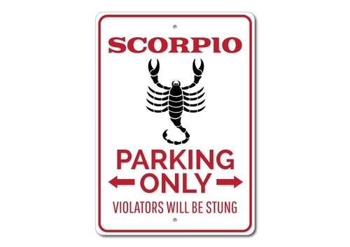 Introducing the Scorpio Parking Sign, a perfect blend of functionality and style for your parking needs. This unique sign not only serves as a clear indicator of your reserved parking space but also adds a personal touch to your property. Whether you own a car, motorcycle, or golf cart, our parking signs are designed to cater to all your parking requirements.