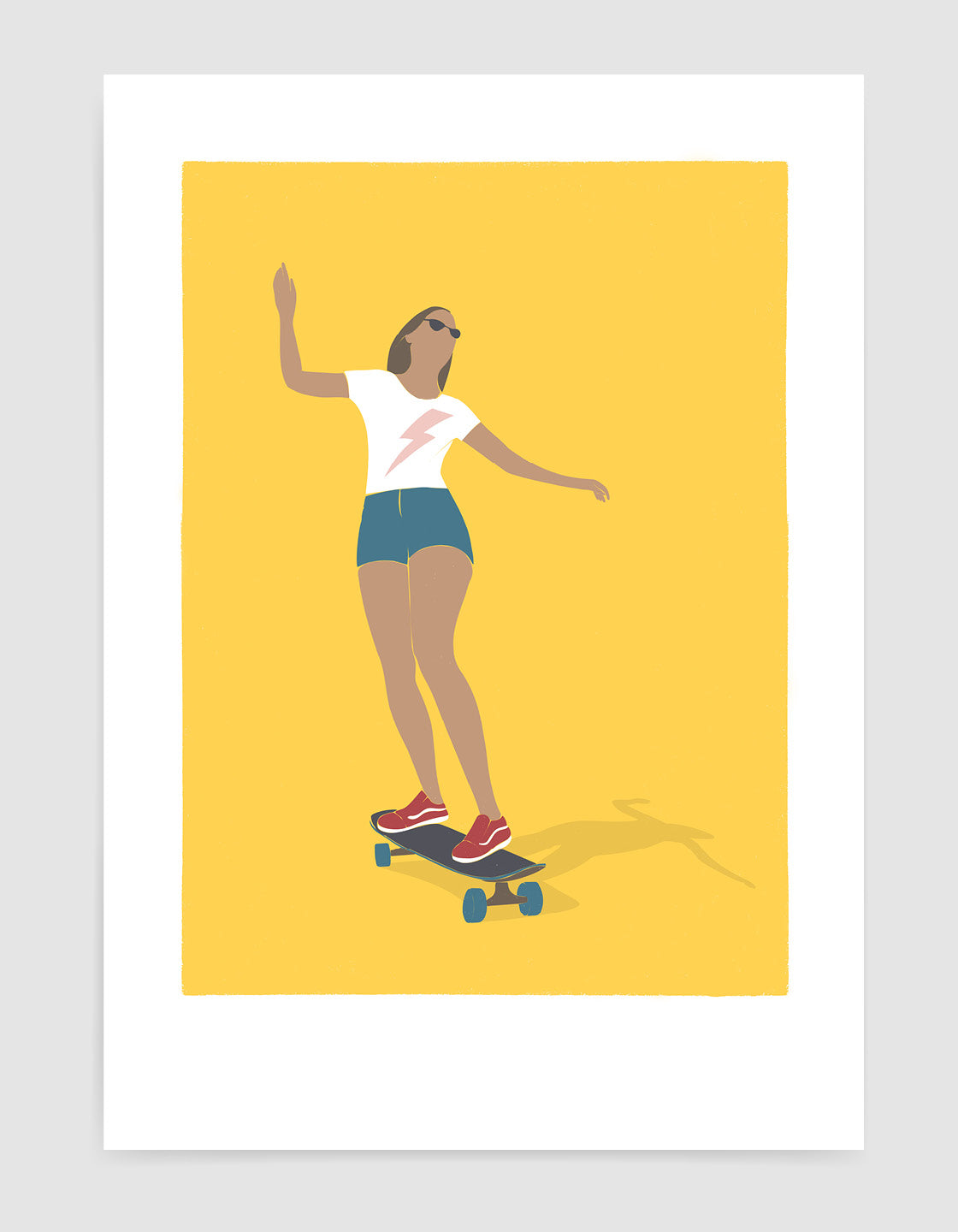 Introducing the Skater Girl IV poster, a stunning addition to any skateboard enthusiast's collection. This original design captures the essence of skateboarding culture, bringing excitement and freedom right to your walls. With its vibrant colors and dynamic imagery, this poster is sure to make a statement in any room.
