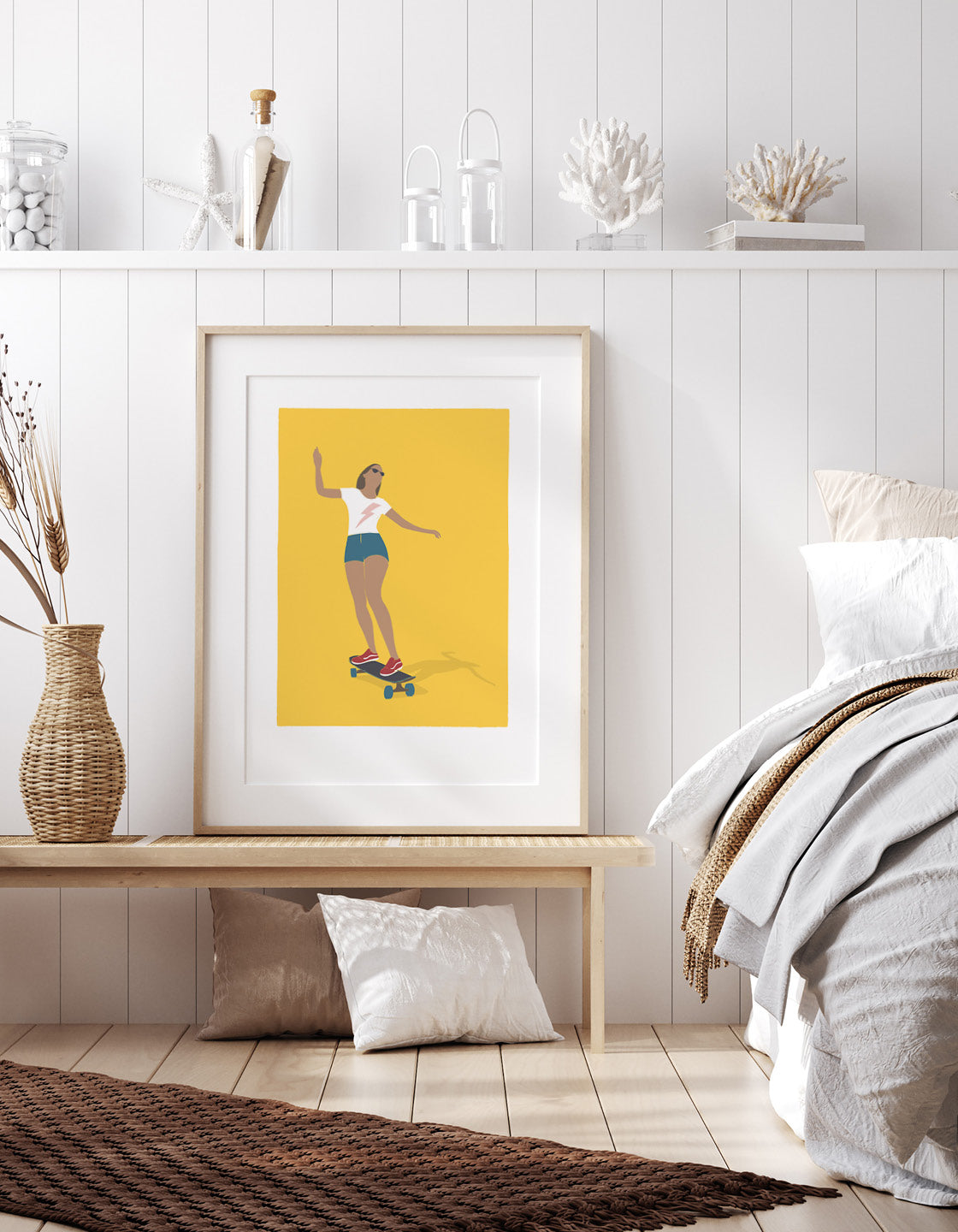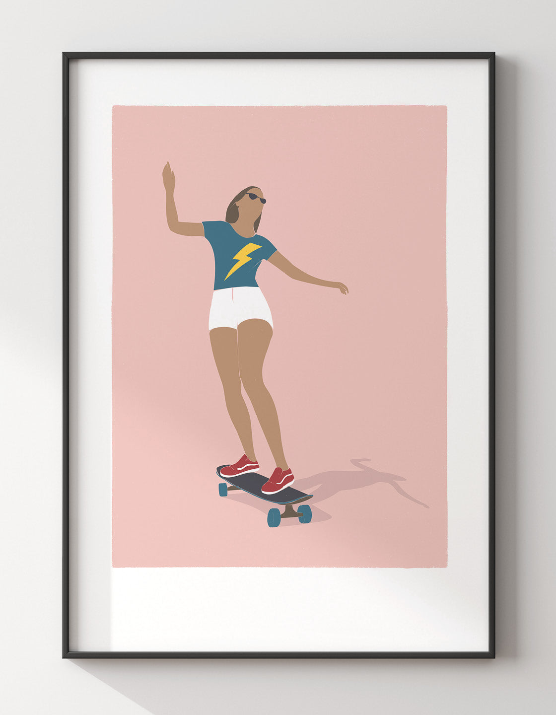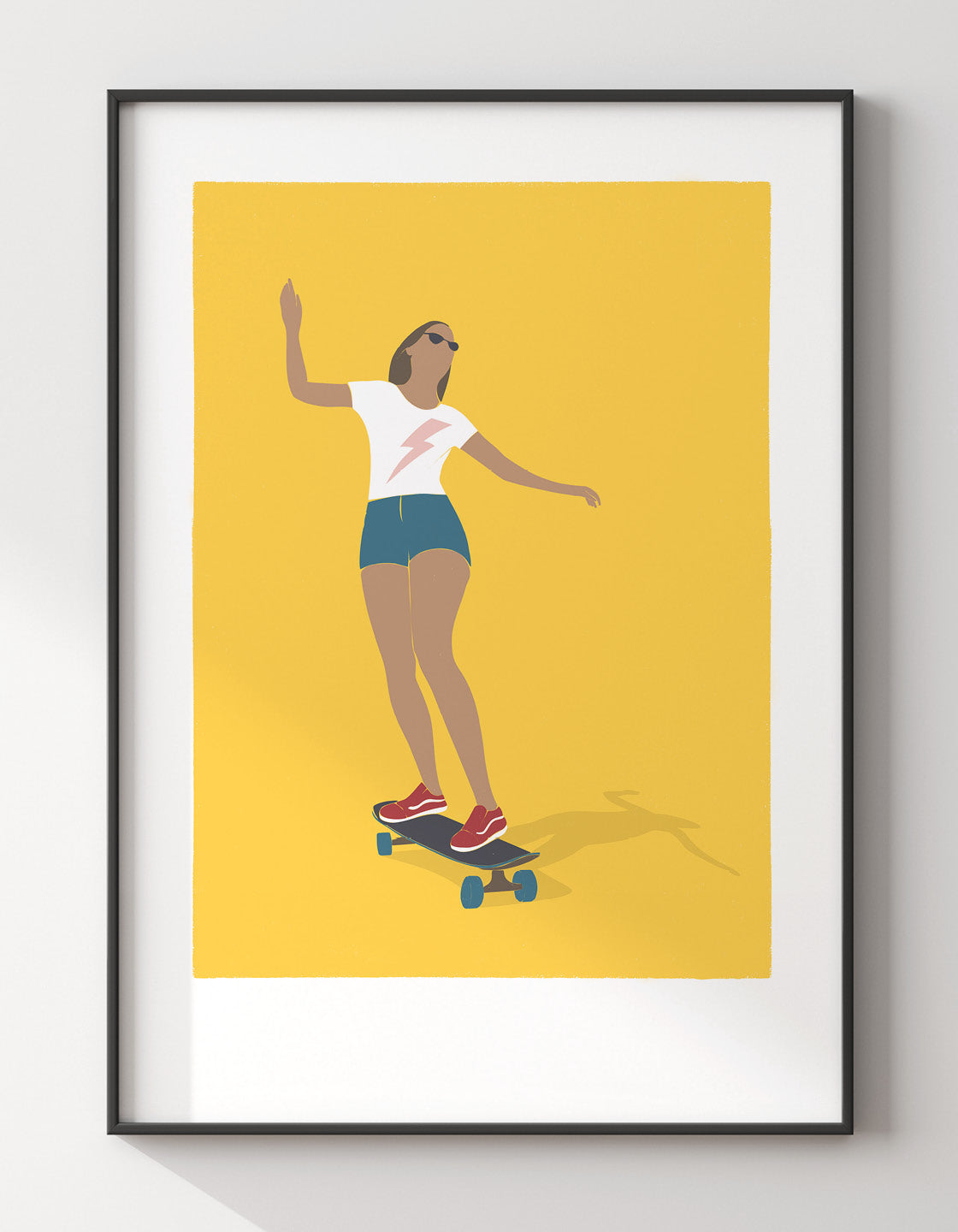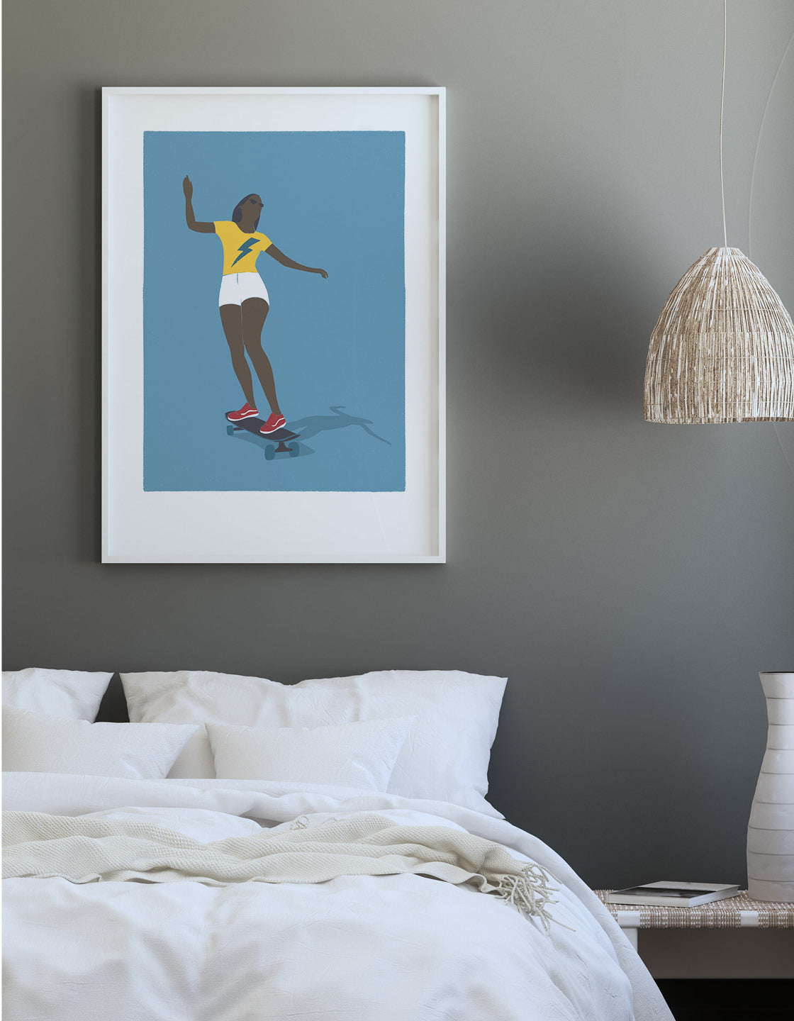 In summary, the Skater Girl IV poster is a must-have for anyone who loves skateboarding or wants to add a pop of color to their space. With its vibrant design, high-quality print, and versatility, it’s the perfect addition to any room. Don’t miss out on the chance to own this stunning piece of art!