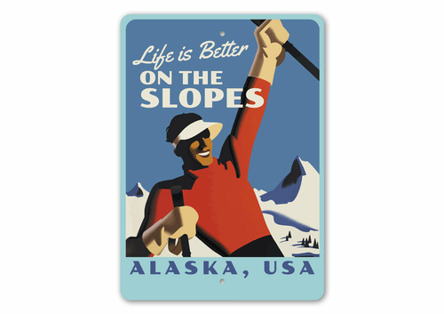 Introducing our stunning Ski Slopes Sign, a decorative piece that adds character and charm to any space. Whether you're looking to spruce up your living room, man cave, or game room, this sign is the perfect choice. Made from high-quality aluminum, it ensures durability and longevity, making it suitable for both indoor and outdoor use.