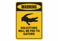 Our signs are crafted from the best quality aluminum, ensuring durability and longevity. Unlike cheap plastic alternatives, our metal signs are built to withstand the test of time, making them a worthwhile investment for your home decor. The 'Solicitors Will Be Fed to Gators' sign is not only a fun addition to your space but also a testament to quality craftsmanship.
