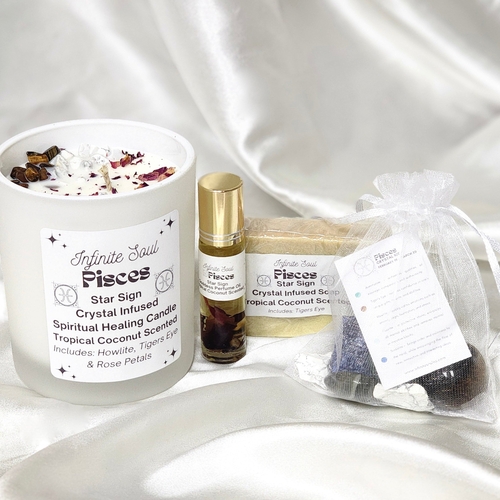 The Pisces Collection is a thoughtfully curated star sign bundle designed specifically for those born under the Pisces zodiac sign, which spans from February 19 to March 20. This collection includes a spiritual healing candle, a beautiful Pisces necklace, elegant earrings, and a crystal healing kit, all aimed at enhancing the natural traits of Pisces individuals.