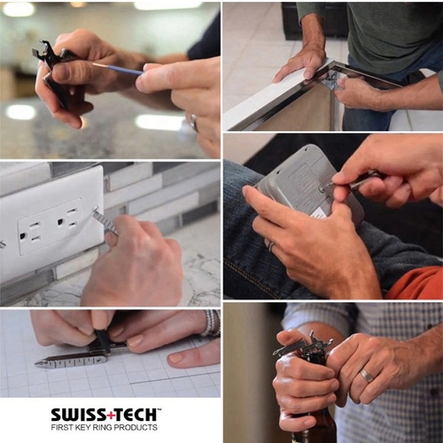 This Micro-Max is a 19-in-1 pocket tool kit. It'll always be close at hand with the key ring attachment. Features: 2 hex wrenches (1/4" & 7/16"), 6 screwdrivers (# 0, 1, 2 flat & # 0, 1, 2 Phillips), pliers, bottle opener, wire cutter, wire stripper, wire crimper, hand drill, file, 2 rulers (mm & inch) and 2 ruler extensions (mm & inch).