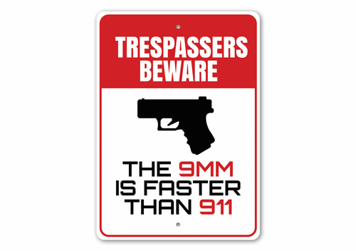 Ordering your very own 9mm is Faster Than 911 Beware Trespassers Sign is simple. Just follow these easy steps: