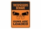 Whether you’re looking to enhance your home’s security or add a fun element to your decor, the Trespassers Beware Guns are Loaded Sign is the perfect choice. With its durable construction, customizable options, and easy installation, it’s a must-have for any property owner.
