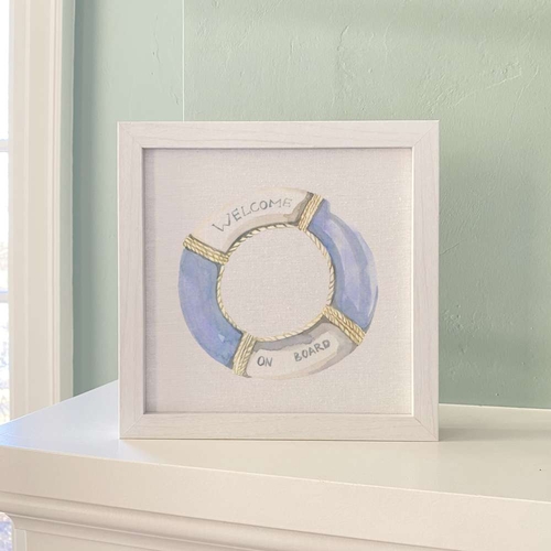 The Welcome on Board Lifebuoy sign measures 9" x 9" x 1.5", making it the perfect size for both wall hanging and shelf display. The natural, linen-style appearance adds a touch of elegance and warmth to your decor. You can choose between two frame options: a rich walnut finish or a trendy white-washed look, allowing you to customize the sign to fit your personal style and existing decor.