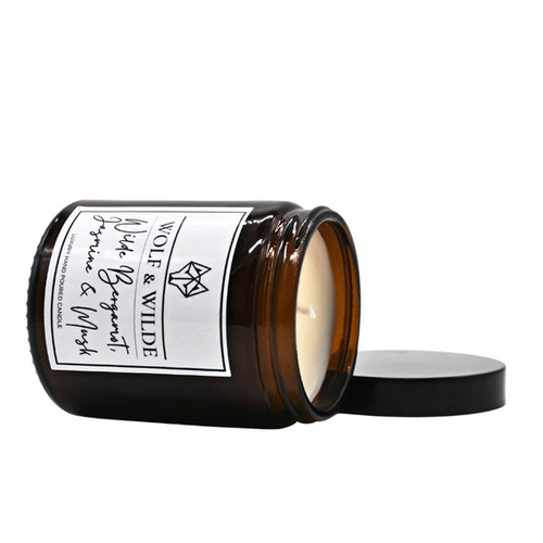 Experience the luxurious scent of the Wilde Bergamot, Jasmine & Musk Luxury Aromatherapy Scented Candle and transform your space into a serene sanctuary.