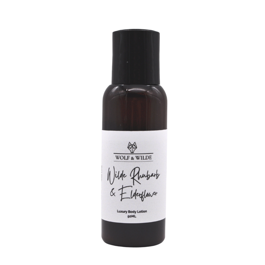 Experience the delightful scent and luxurious feel of our Wilde Rhubarb & Elderflower Travel Size Luxury Body Lotion. This 50ML lotion is designed for those who appreciate quality skincare on the go. Whether you're traveling for business or pleasure, this compact lotion is the perfect companion to keep your skin hydrated and fragrant.
