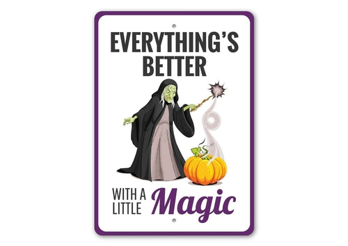 Worried about how to display your new sign? Don’t be! Our Witch and Pumpkin Sign comes with two conveniently placed pre-drilled holes, making mounting and installation a breeze. Whether you want to hang it on your front porch or inside your home, you can do so without any hassle.