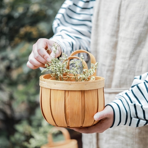 A bohemian small storage solution or a vase, the choice is yours. These beautiful baskets are made of wood chip and are perfect for gardening, storing fruits and vegetables or simply having around. With handles to tote, get ready for harvest season with these adorable sturdy baskets.