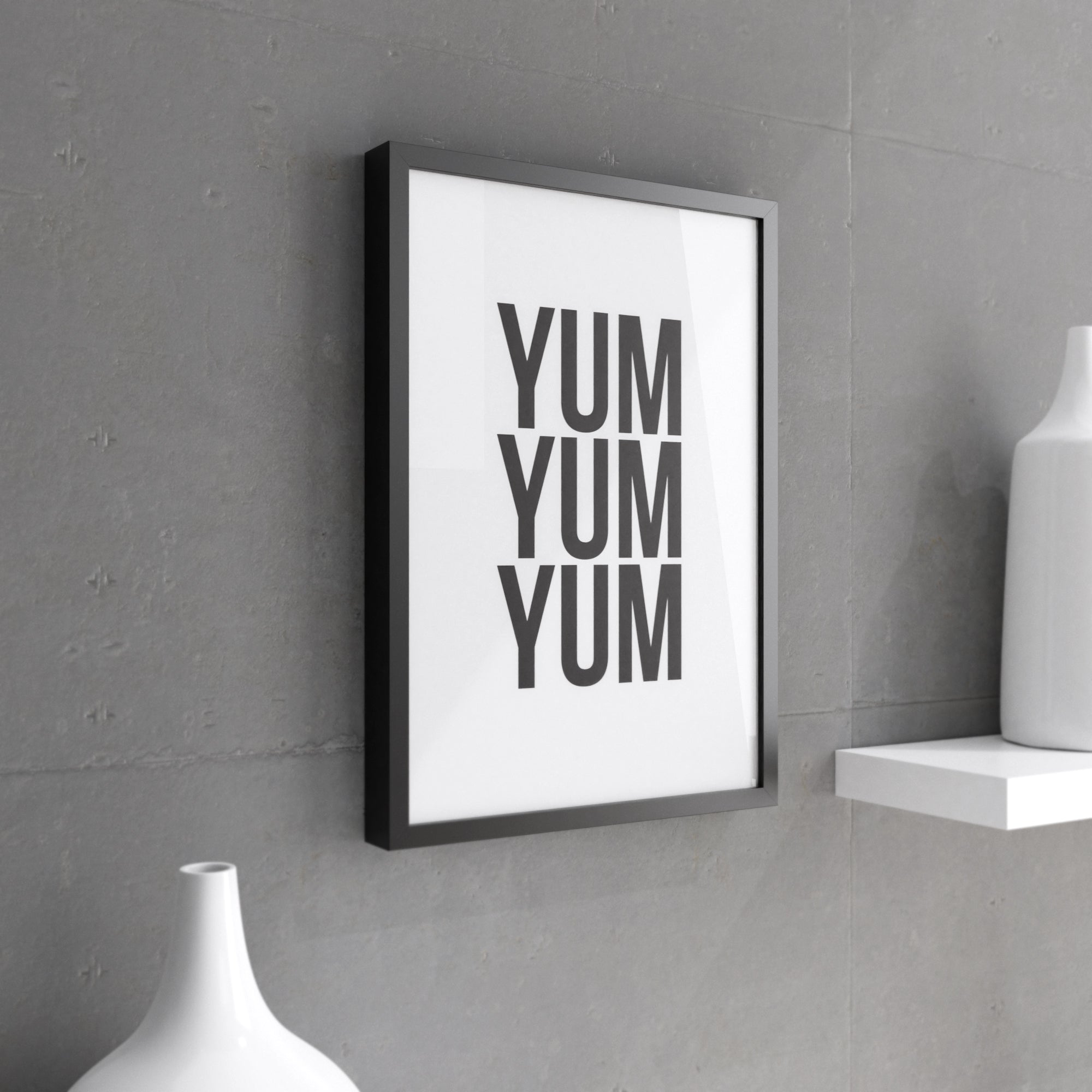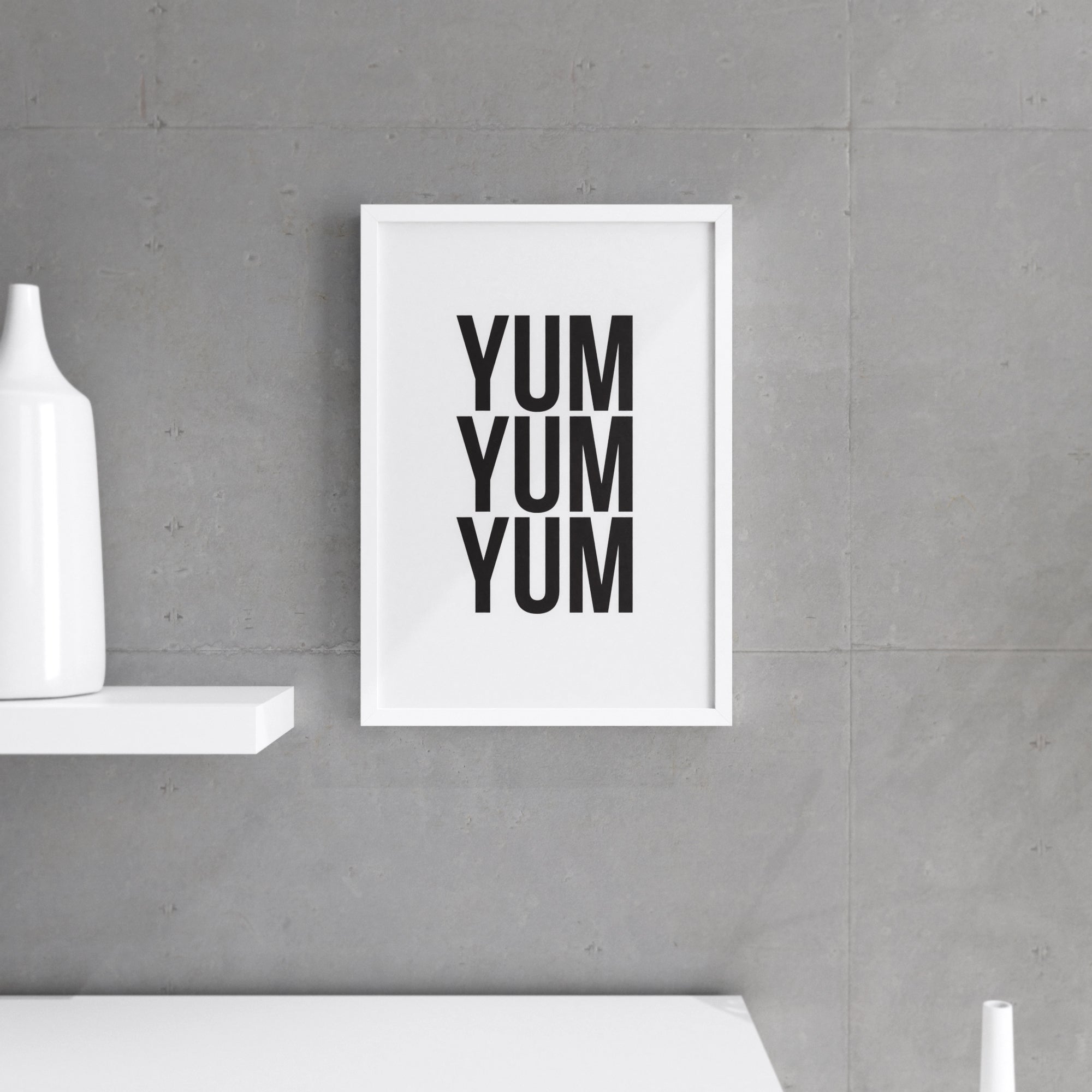 Looking for a unique gift for a friend or family member? The Yum Yum Yum wall print makes an excellent present for birthdays, housewarmings, or any special occasion. Its humorous design is sure to bring a smile to anyone's face, making it a thoughtful and memorable gift.