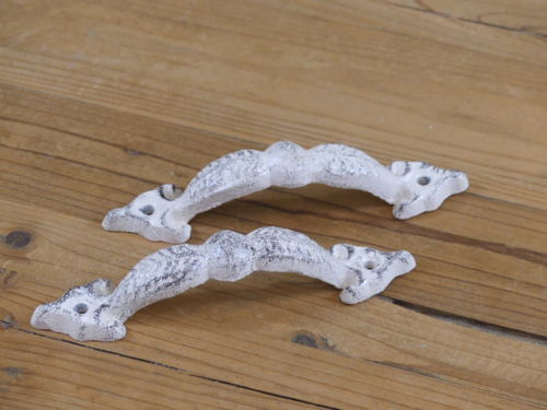 Add a touch of rustic charm to your doors and cabinets with these 12 handles from Midwest Craft House. Made of cast iron, these antique-style handles come in a distressed white finish that will perfectly complement your farmhouse or vintage decor. Measuring 5.75 inches in length, they are suitable for barn doors, shed doors, kitchen cabinets, bathroom cabinets, dressers, and chests.