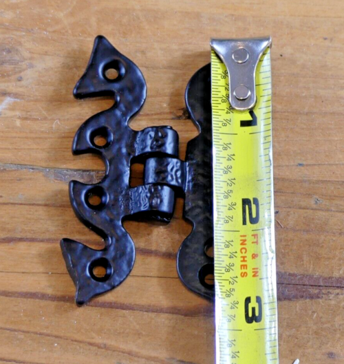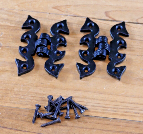 4 SMALL HINGES! SALE INCLUDES 4! BLACK FINISH! 2 3/4" FROM TOP TO BOTTOM AND 2" WIDE! DECORATIVE VINTAGE LOOK! SCREWS ARE INCLUDES WITH THIS ITEM! SHIPPED OUT WITHIN ONE BUSINESS DAY, SO YOU CAN GET FAST! FREE SHIPPING! |