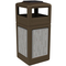 Durable, Precision Series 42-Gallon Square trash receptacle with decorative Horizontal stainless steel panels has a streamlined, contemporary appearance. Pre-mounted stainless steel panels with a unique horizontal design, offer an artistic and distinctive style that will compliment any surrounding. The innovative snap lid closure and patented Grab Bag system secure the trash bag in place for a cleaner appearance with a decreased chance of the lid blowing off. Covered dome lid keeps weather elements out and offers convenient disposal on all four sides. Powder-coated ashtray on top of dome lid includes a snuffer to extinguish cigarettes and can be removed for cleaning.