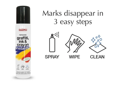 UberPro Graffiti, ink & Crayon remover is an effective cleaning agent for ink, crayon, graffiti & glue residue. It also removes