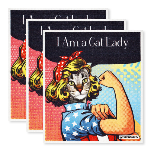 12 Pack Eco Friendly Swedish Dishcloth Random Cat Lady