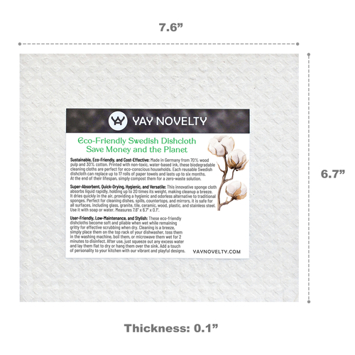 Discover YAY NOVELTY's Swedish dishcloth, a revolution in cleaning! These ultra-absorbent cloths, made from a blend of natural materials, outperform traditional cotton rags, microfiber cloths, paper towels, and sponges. Lightweight yet incredibly effective, they tackle spills and messes quickly and effortlessly, leaving no streaks or residue behind. More than just a practical cleaning tool, the Swedish dishcloth is biodegradable, making it an eco-friendly choice that aligns with your values as a conscientious consumer. Integrate this versatile, stylish, and sustainable product into your home today to make a positive impact on the planet while saving money.