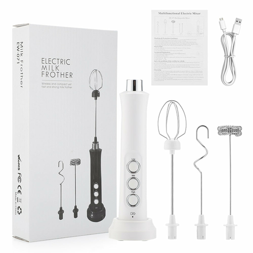 This frother includes three replaceable mixing heads, each designed for different tasks. Whether you're whisking cream, mixing milk powder, or frothing milk, you can easily switch out the heads to suit your needs. This versatility makes the frother an essential tool for any kitchen.