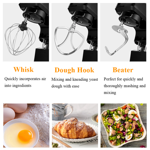 2. Each stand mixer comes with a dough hook, flat beater, whisk