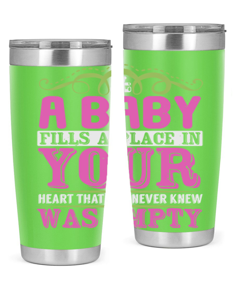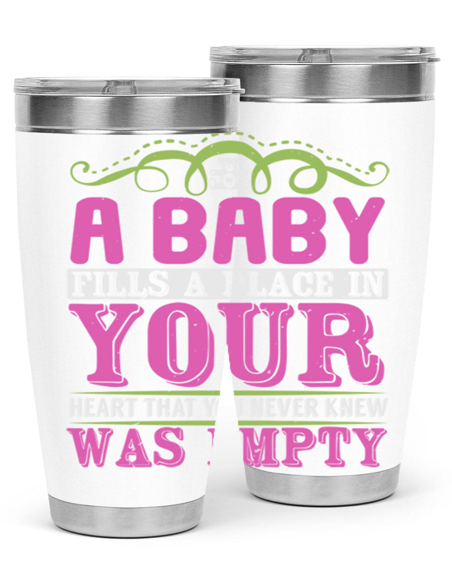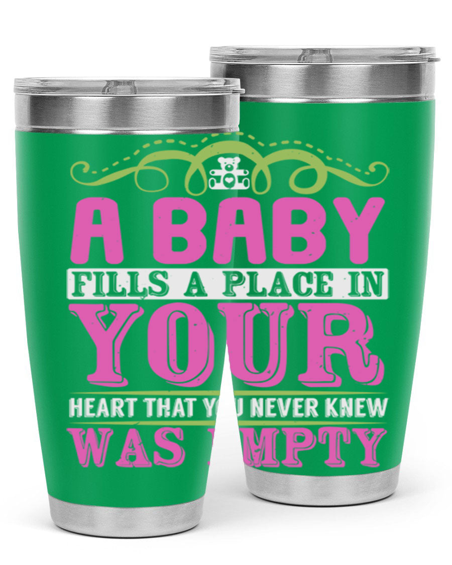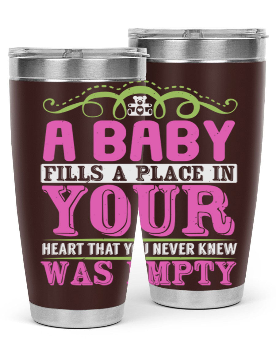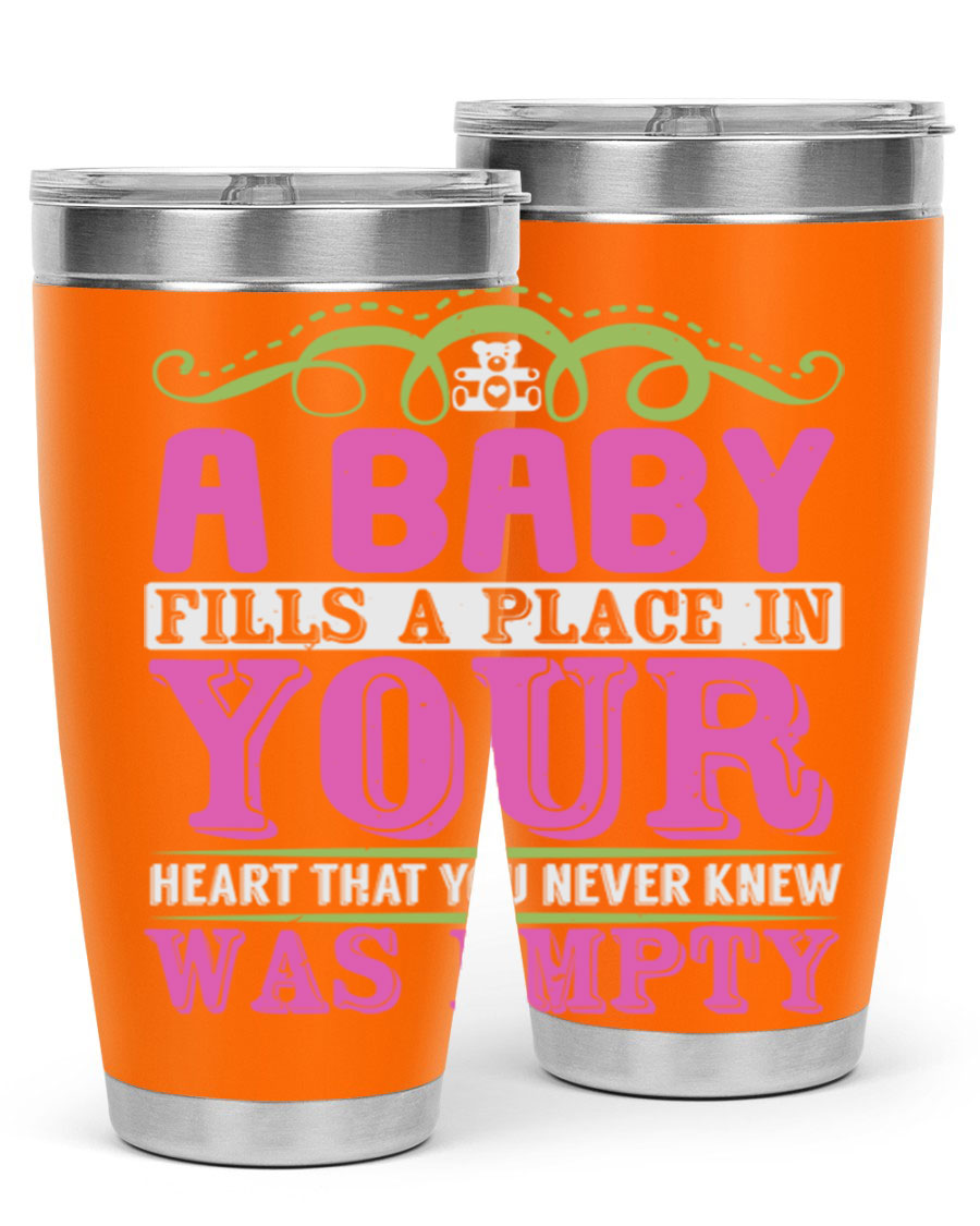 In summary, the 'A baby fills A place in Your Heart that you never knew was empty' tumbler is more than just a drinkware item; it's a celebration of love and joy that comes with parenthood. With its excellent insulation, convenient design, and heartfelt message, it’s a must-have for anyone who values quality and sentiment in their everyday items.