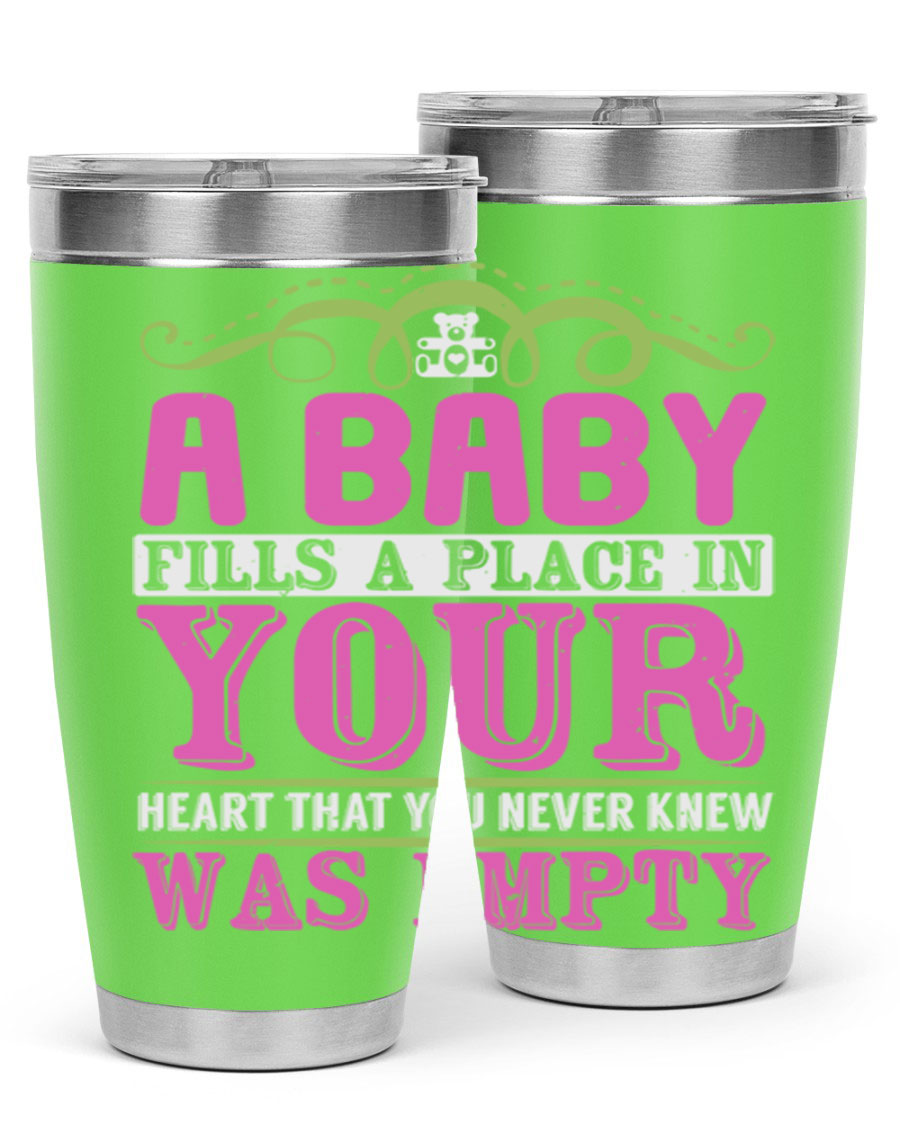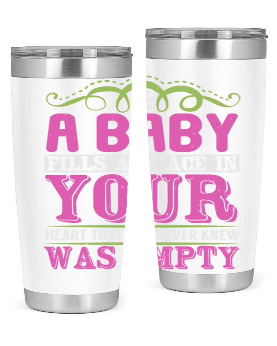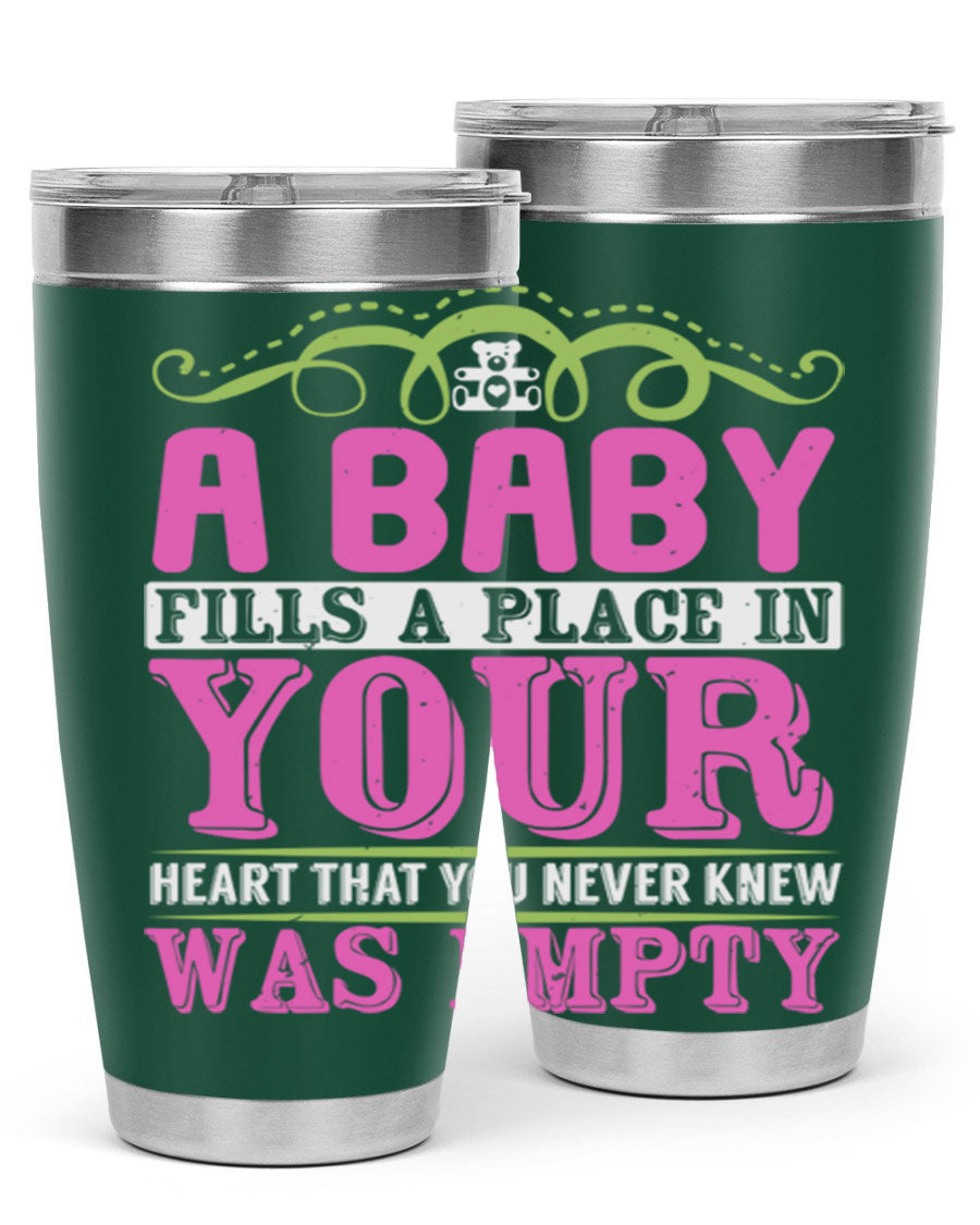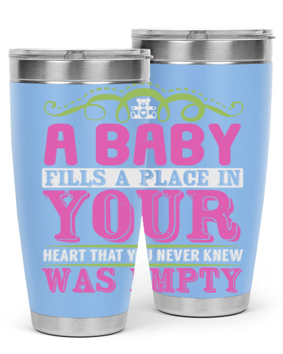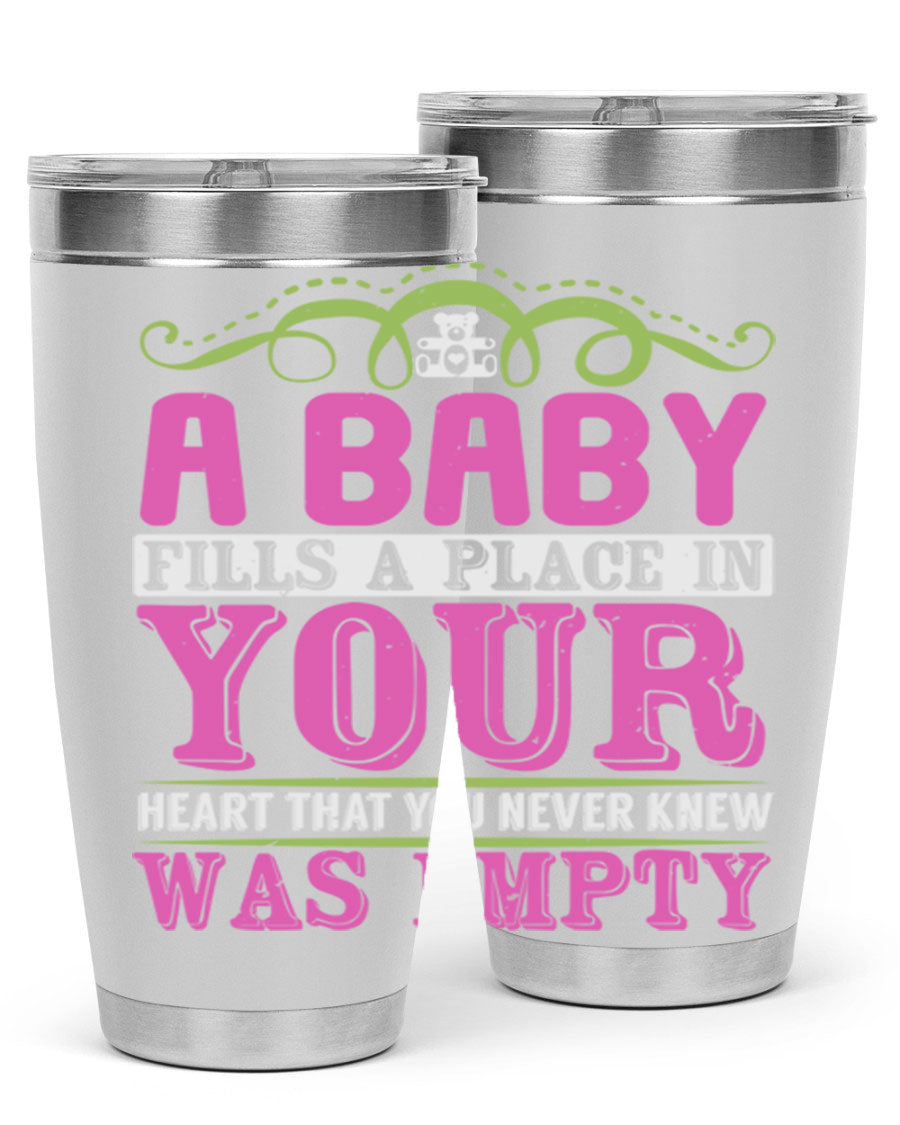In summary, the 'A baby fills A place in Your Heart that you never knew was empty' tumbler is more than just a drinkware item; it's a celebration of love and joy that comes with parenthood. With its excellent insulation, convenient design, and heartfelt message, it’s a must-have for anyone who values quality and sentiment in their everyday items.