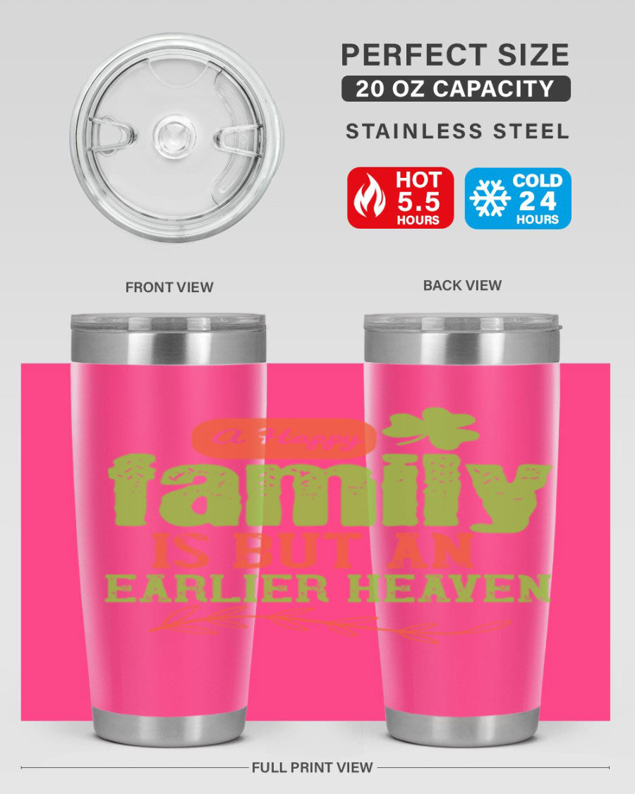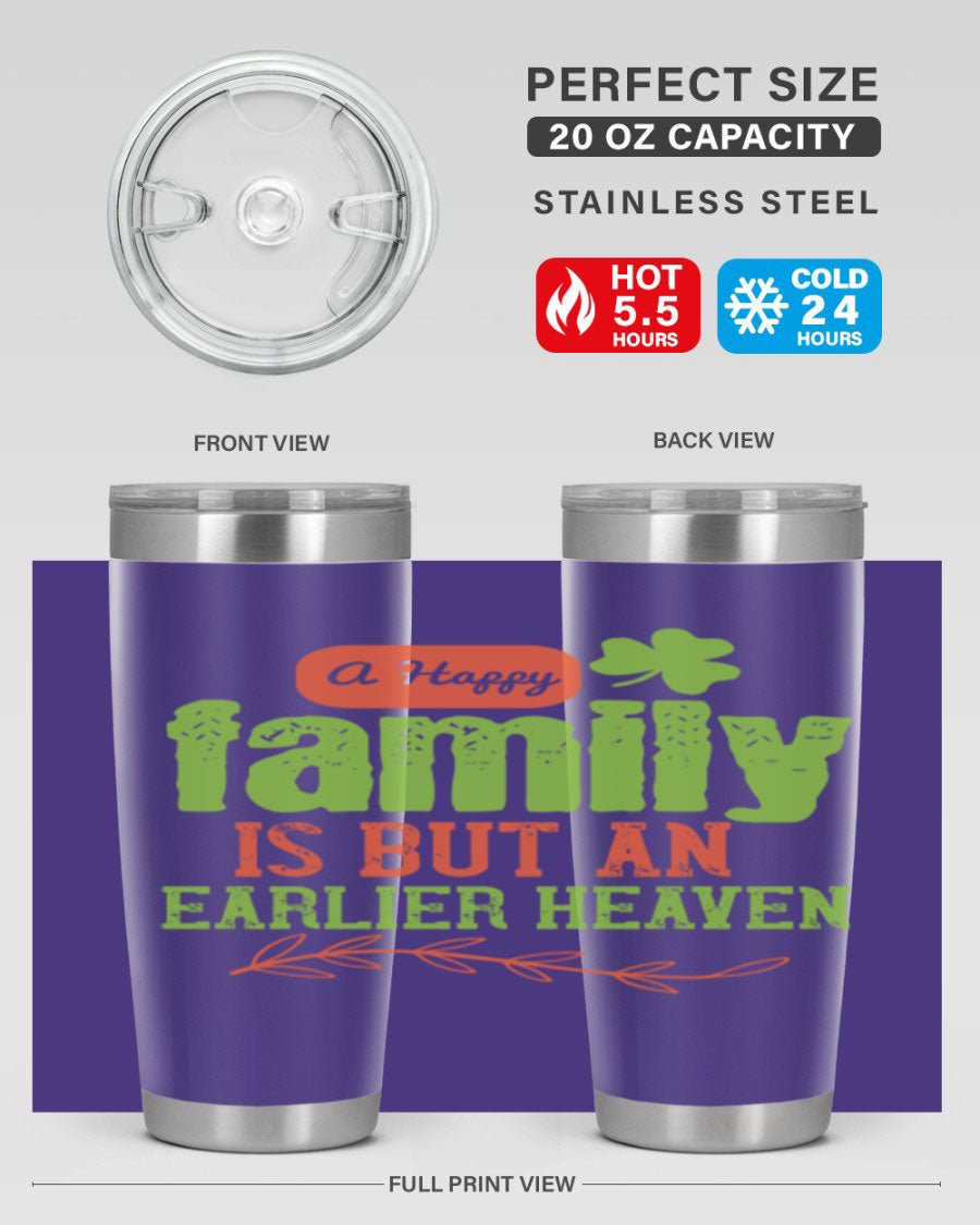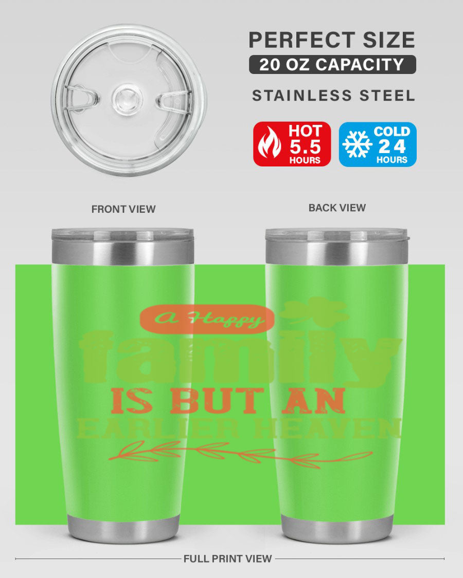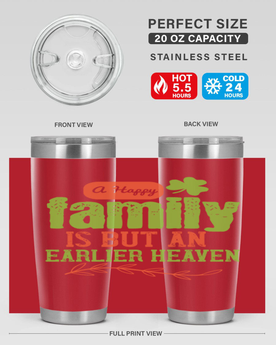 Whether you're heading to work, going on a road trip, or enjoying a picnic, the A Happy Family tumbler is the perfect accessory. Its generous 20oz capacity allows you to carry enough of your favorite beverage without the need for constant refills. Plus, the cheerful design featuring the phrase 'A happy family is but an earlier heaven' adds a touch of warmth and positivity to your day.