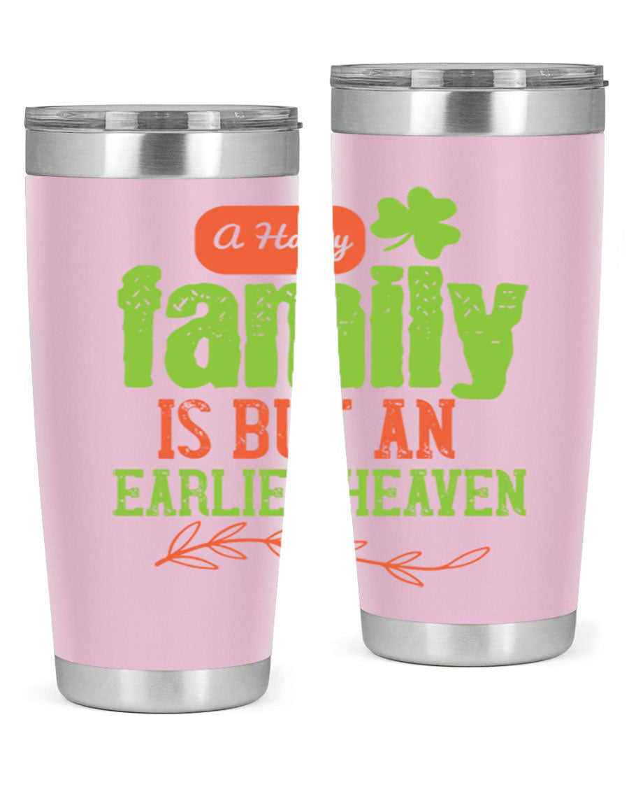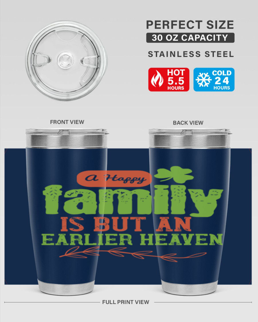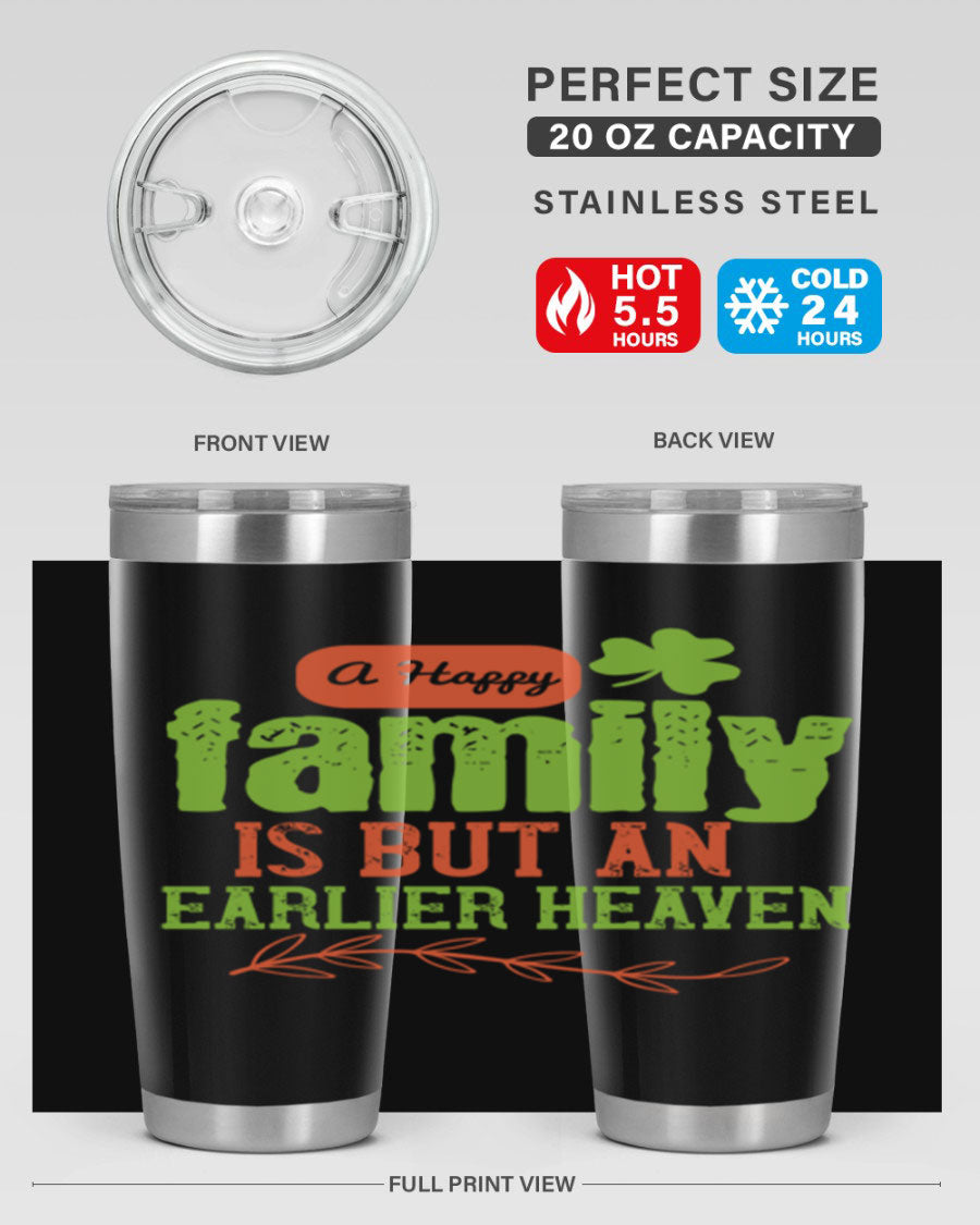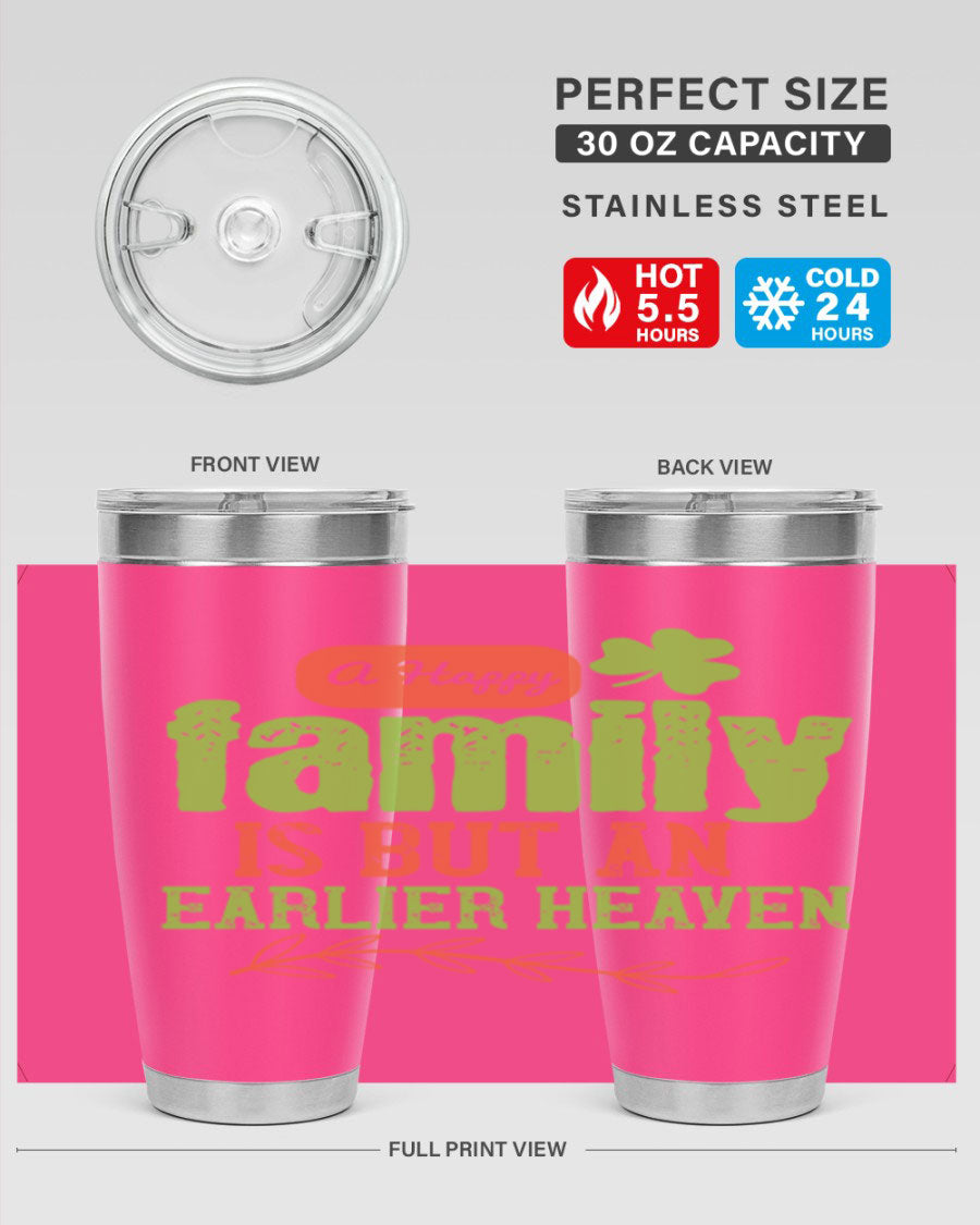 Whether you're heading to work, going on a road trip, or enjoying a picnic, the A Happy Family tumbler is the perfect accessory. Its generous 20oz capacity allows you to carry enough of your favorite beverage without the need for constant refills. Plus, the cheerful design featuring the phrase 'A happy family is but an earlier heaven' adds a touch of warmth and positivity to your day.