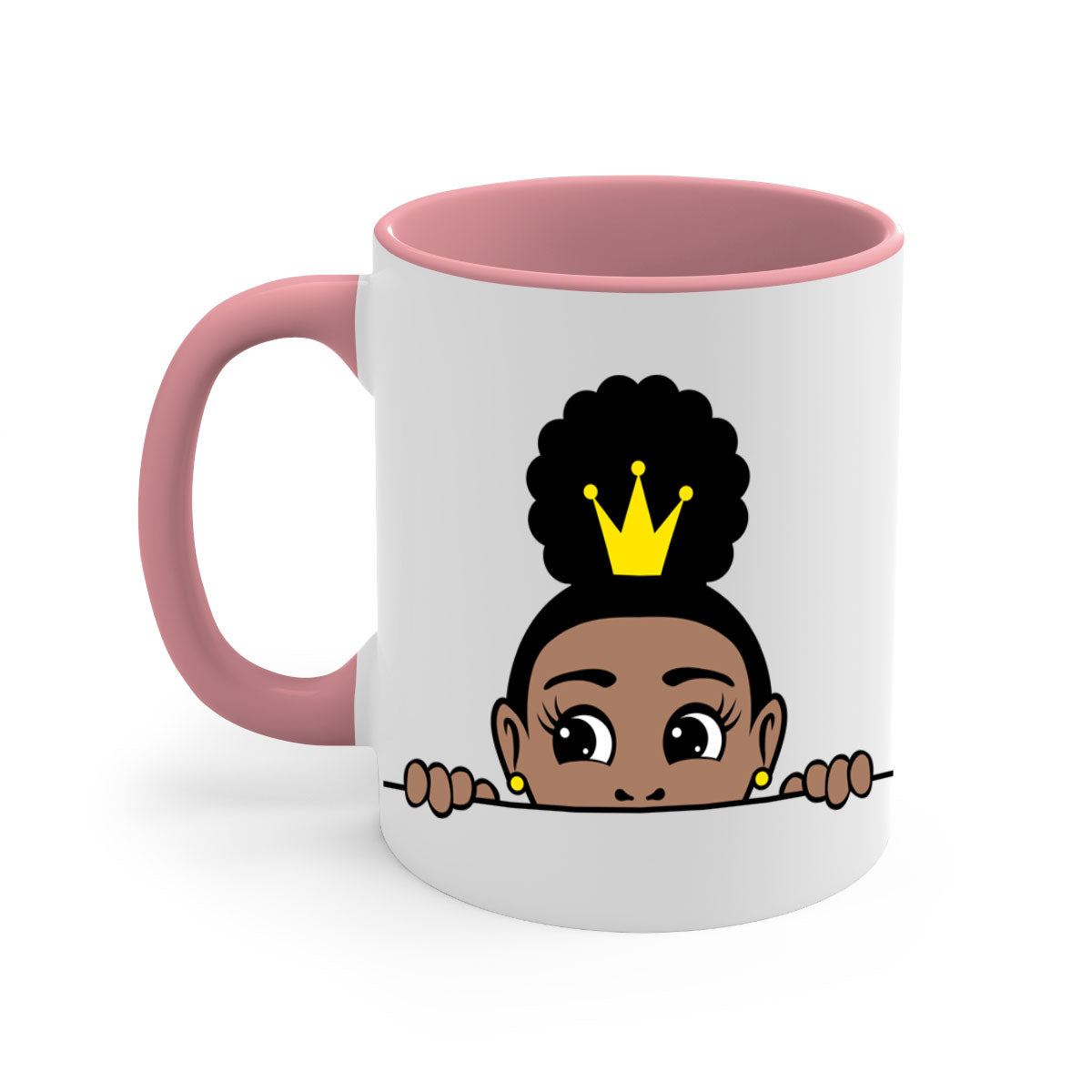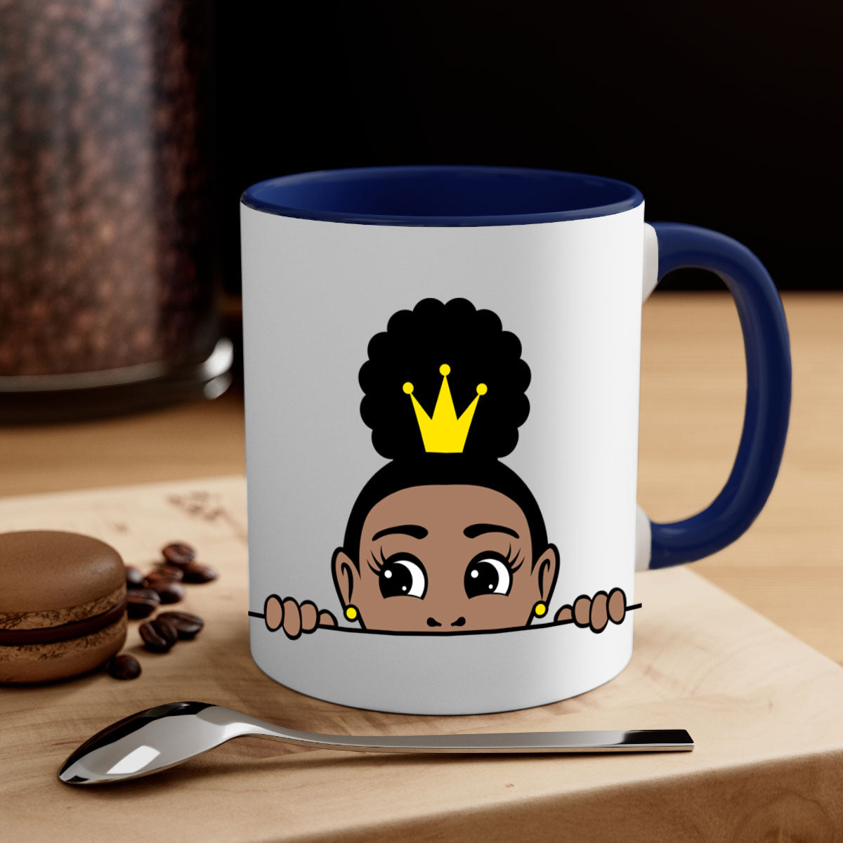 Afro Puff Crown Girl Mug featuring a vibrant two-tone design with a colored handle and glossy finish, perfect for coffee and tea lovers.