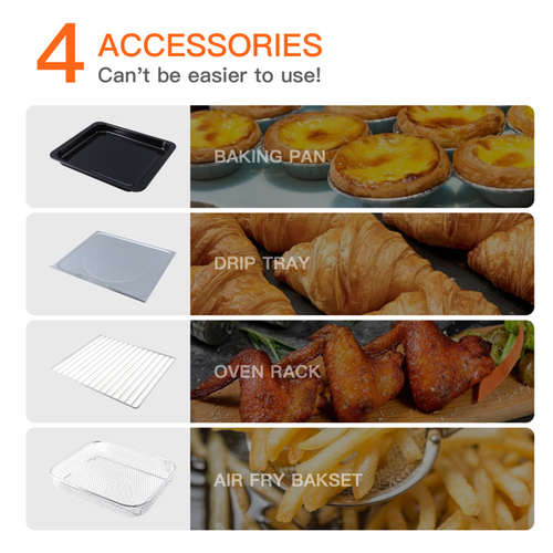 - ✔MULTI-FUNCTION Toaster Oven - This air fryer toaster oven includes 7 versatile presets: Air Fry, Toast/Bake, Roast, Broil, Defrost, Convection Broil, and Grill. All-in-One Air Fryer Oven.And you will get: lovely E- Recipes and accessories(Air fryer basket, oven rack, baking pan, and drip tray).