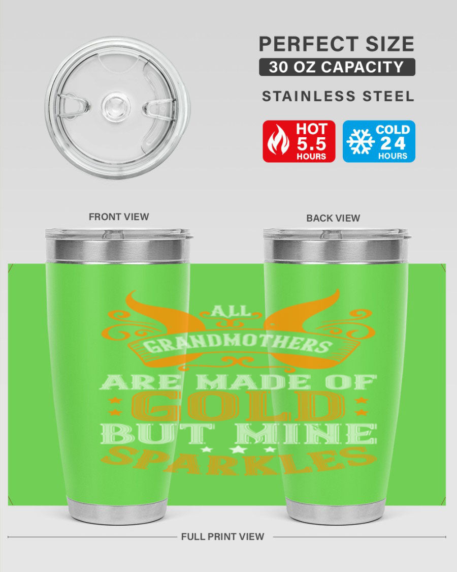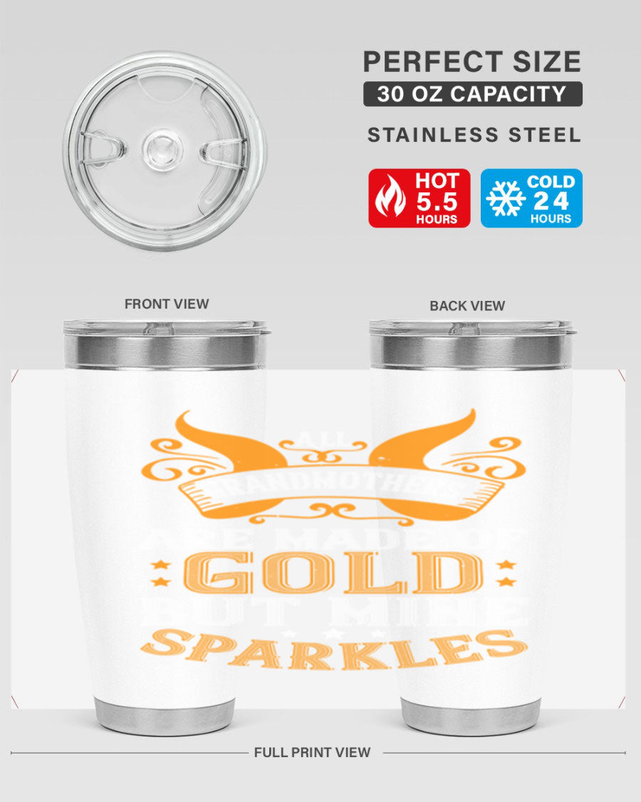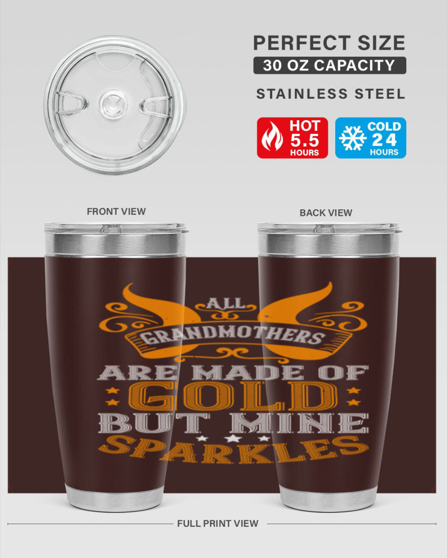 In summary, the 'All Grandmothers Are Made of Gold But Mine Sparkles' tumblers are more than just drinkware; they are a celebration of the special relationship between you and your grandmother. With their exceptional insulation, convenient design, and heartfelt message, these tumblers are a must-have for anyone looking to honor their beloved grandmother.