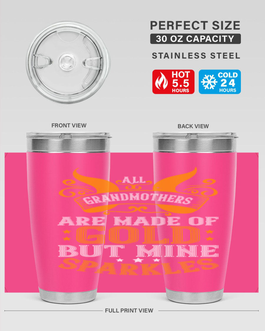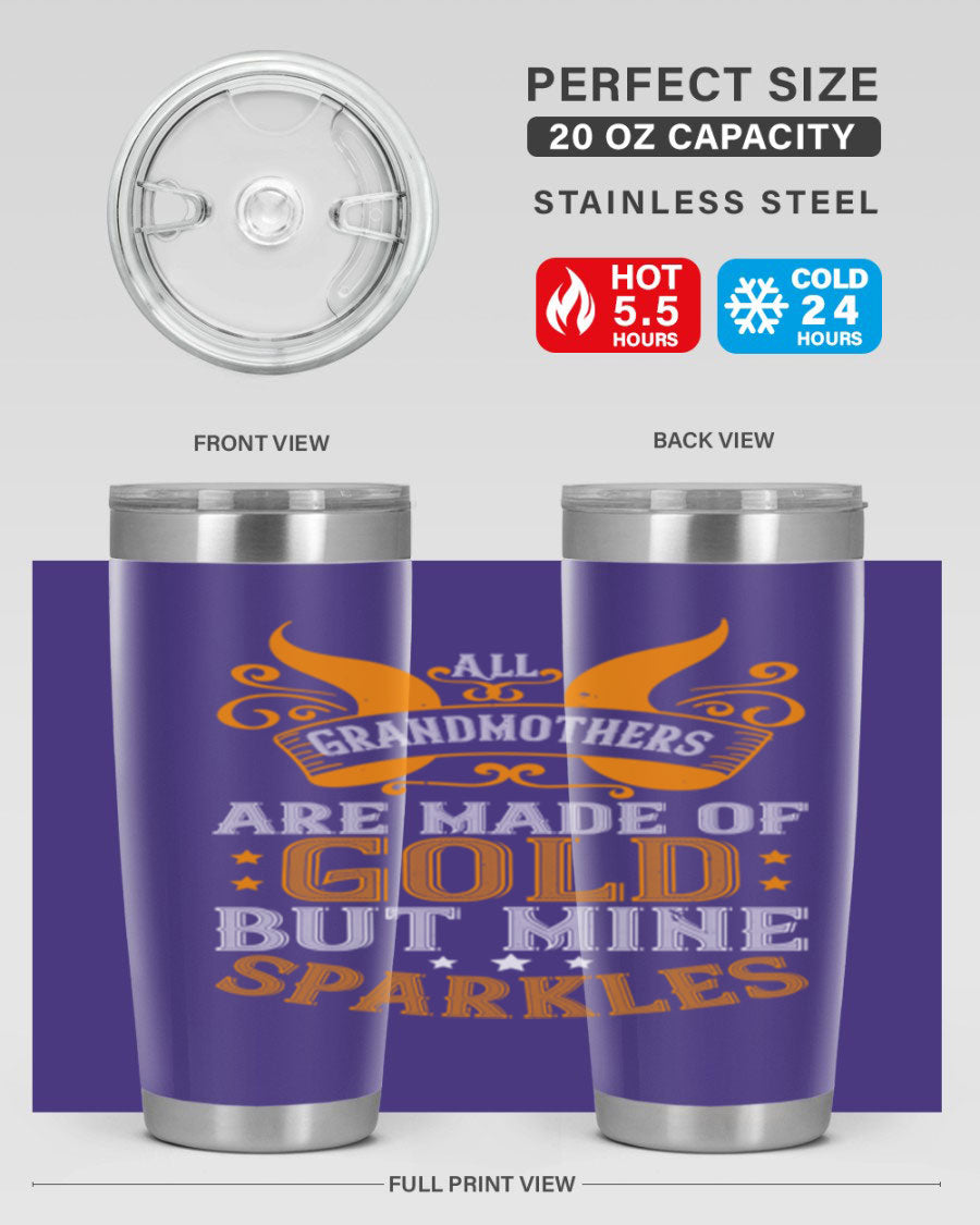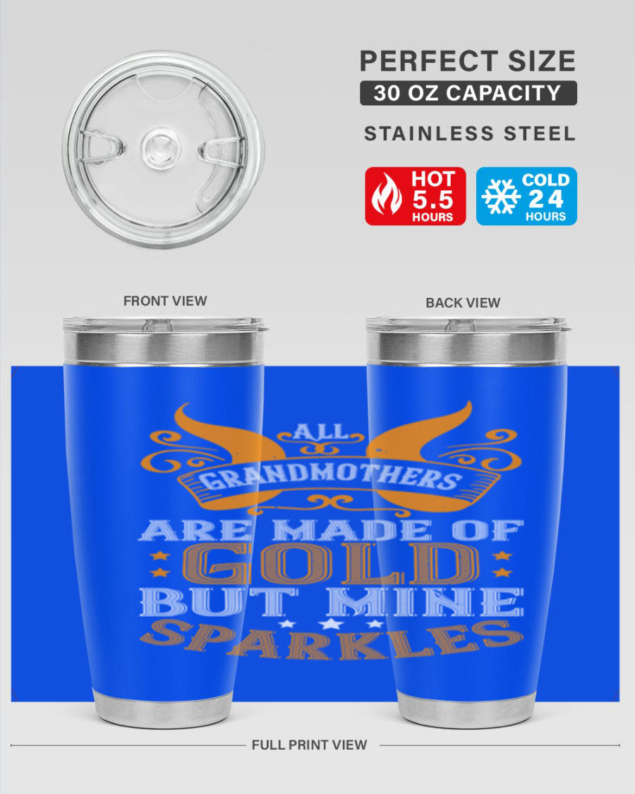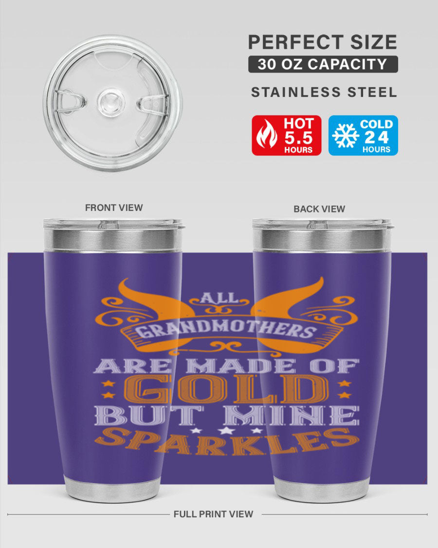 In summary, the 'All Grandmothers Are Made of Gold But Mine Sparkles' tumblers are more than just drinkware; they are a celebration of the special relationship between you and your grandmother. With their exceptional insulation, convenient design, and heartfelt message, these tumblers are a must-have for anyone looking to honor their beloved grandmother.