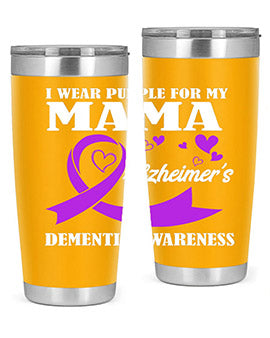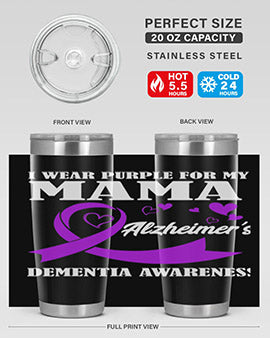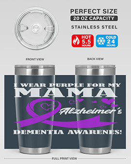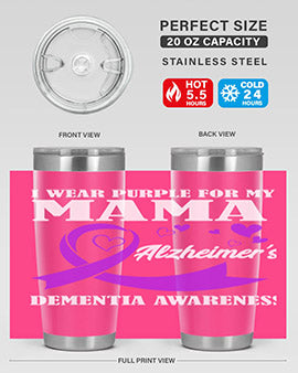 Alzheimers and Dementia I Wear Purple For My Warrior Mama tumbler, showcasing a double wall vacuum stainless steel design in vibrant purple.