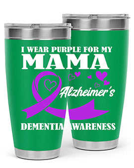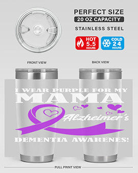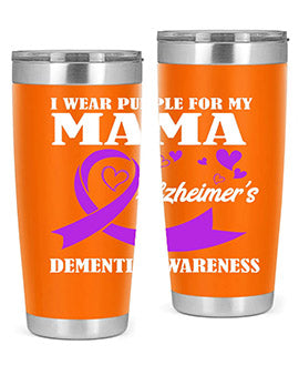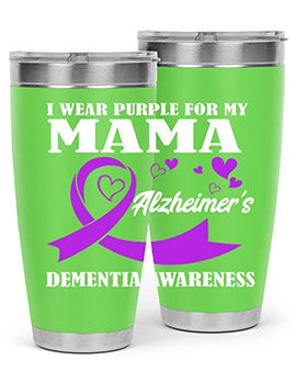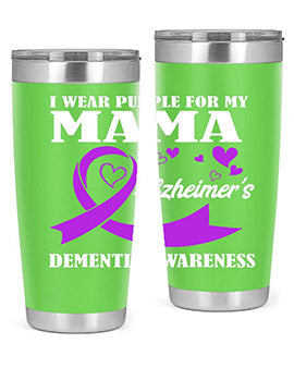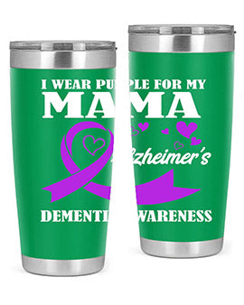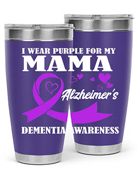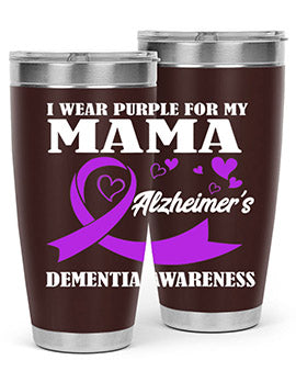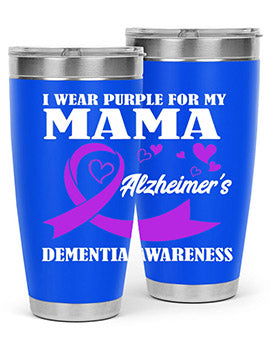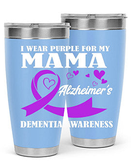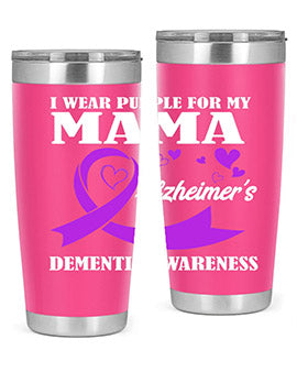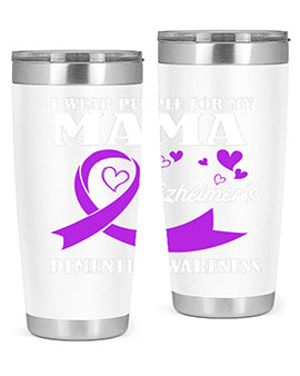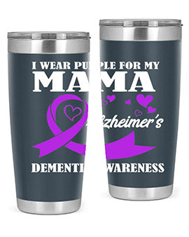 The Alzheimers and Dementia I Wear Purple For My Warrior Mama tumbler is a heartfelt tribute to those battling these challenging conditions. Available in both 20oz and 30oz sizes, this tumbler is designed to keep your favorite beverages at the perfect temperature while showcasing your support for loved ones affected by Alzheimer's and dementia.