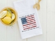 American Flag Cotton Tea Towel featuring vibrant colors and hemmed edges, perfect for kitchen use.