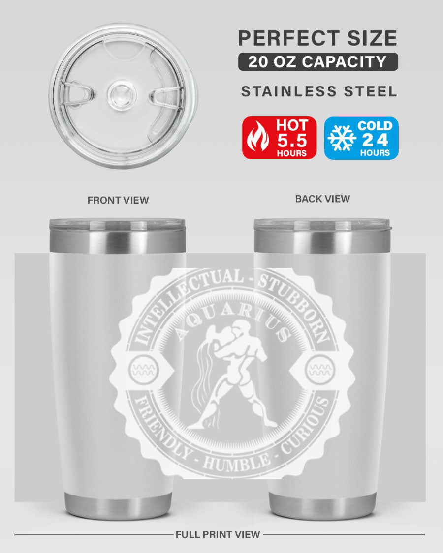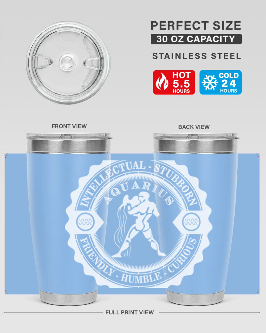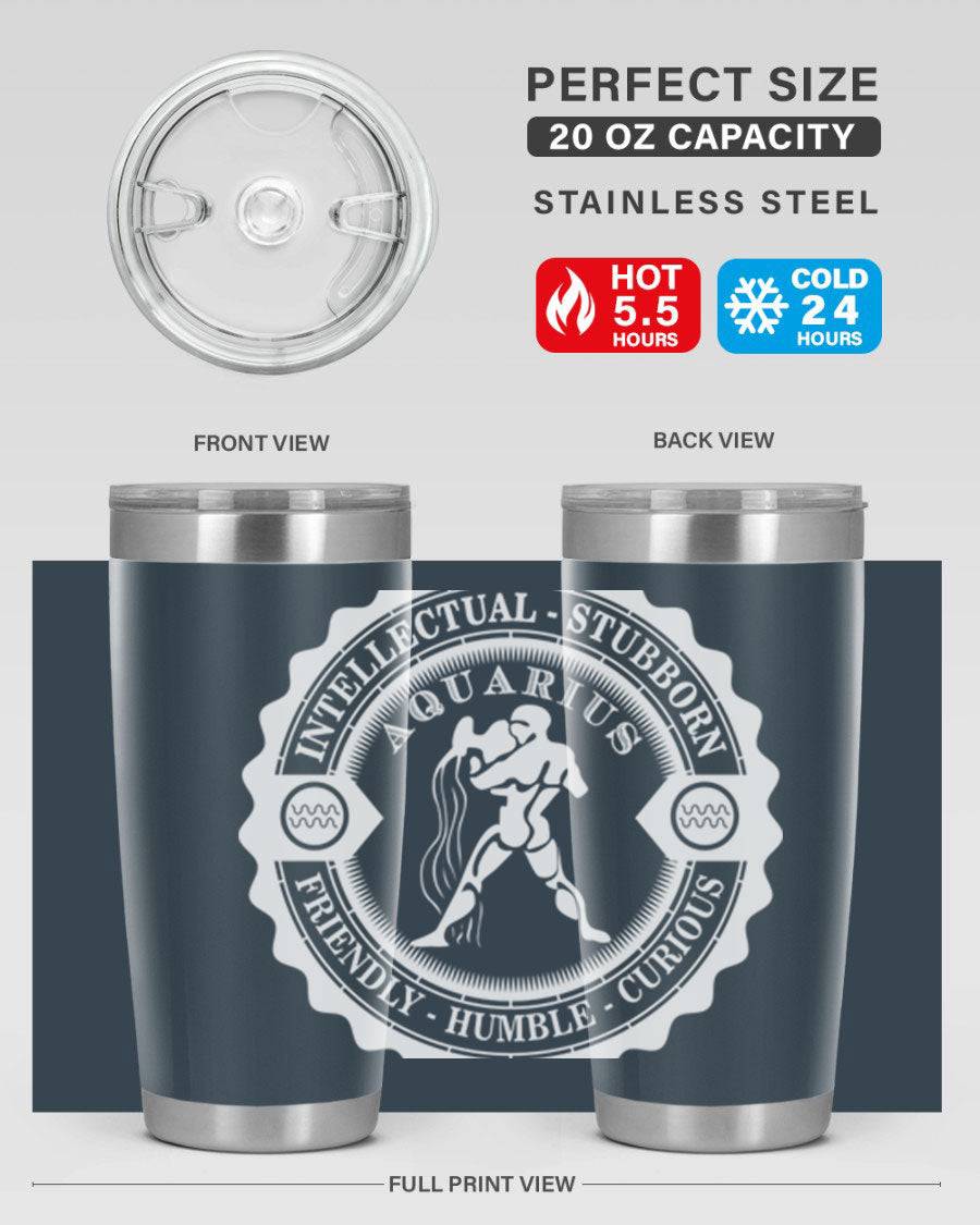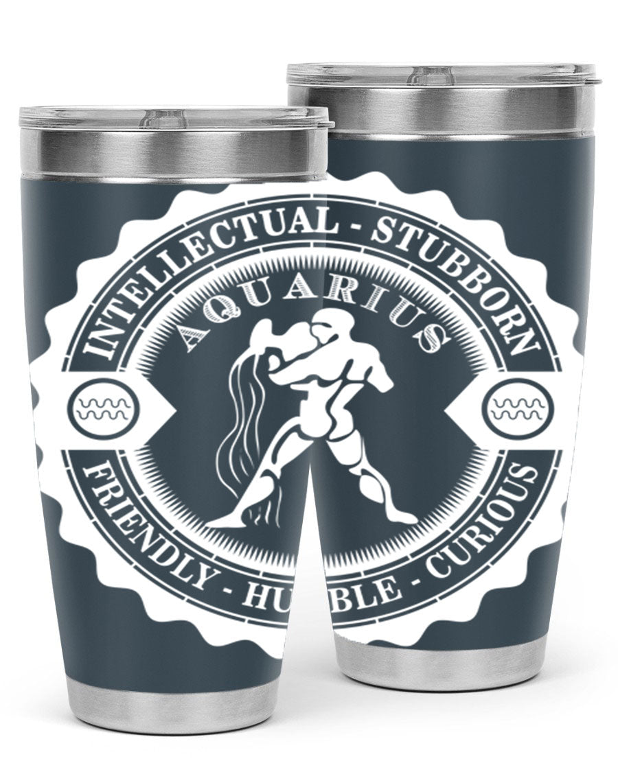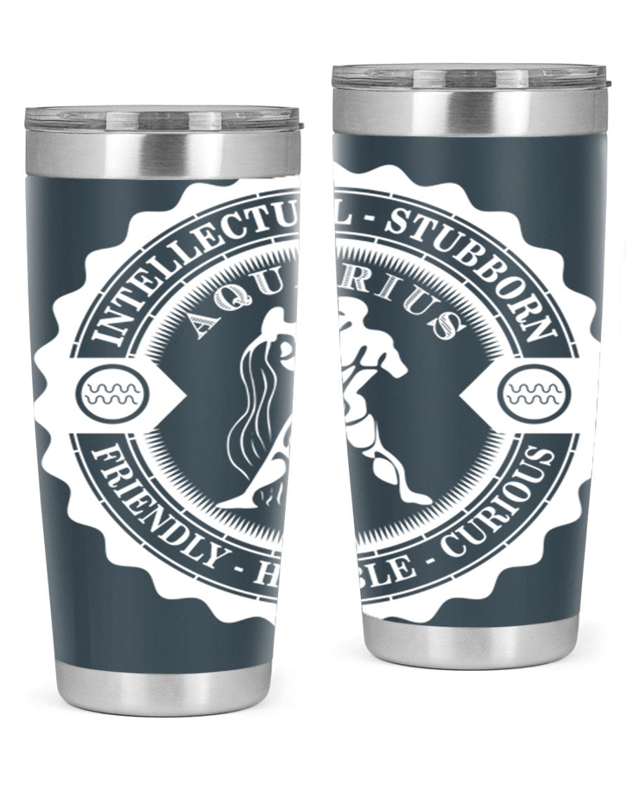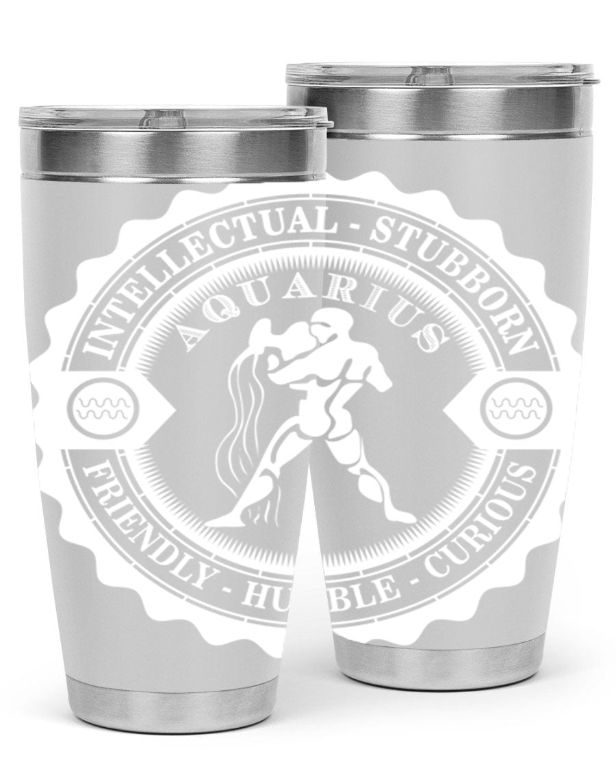 Aquarius 45# Zodiac Tumbler in stainless steel with a drink-thru lid, showcasing its stylish design and functionality.