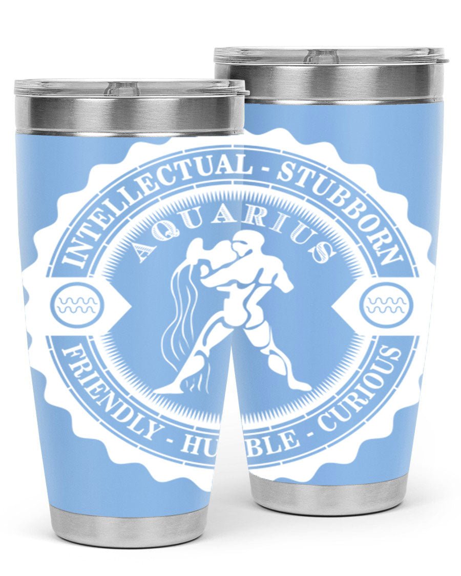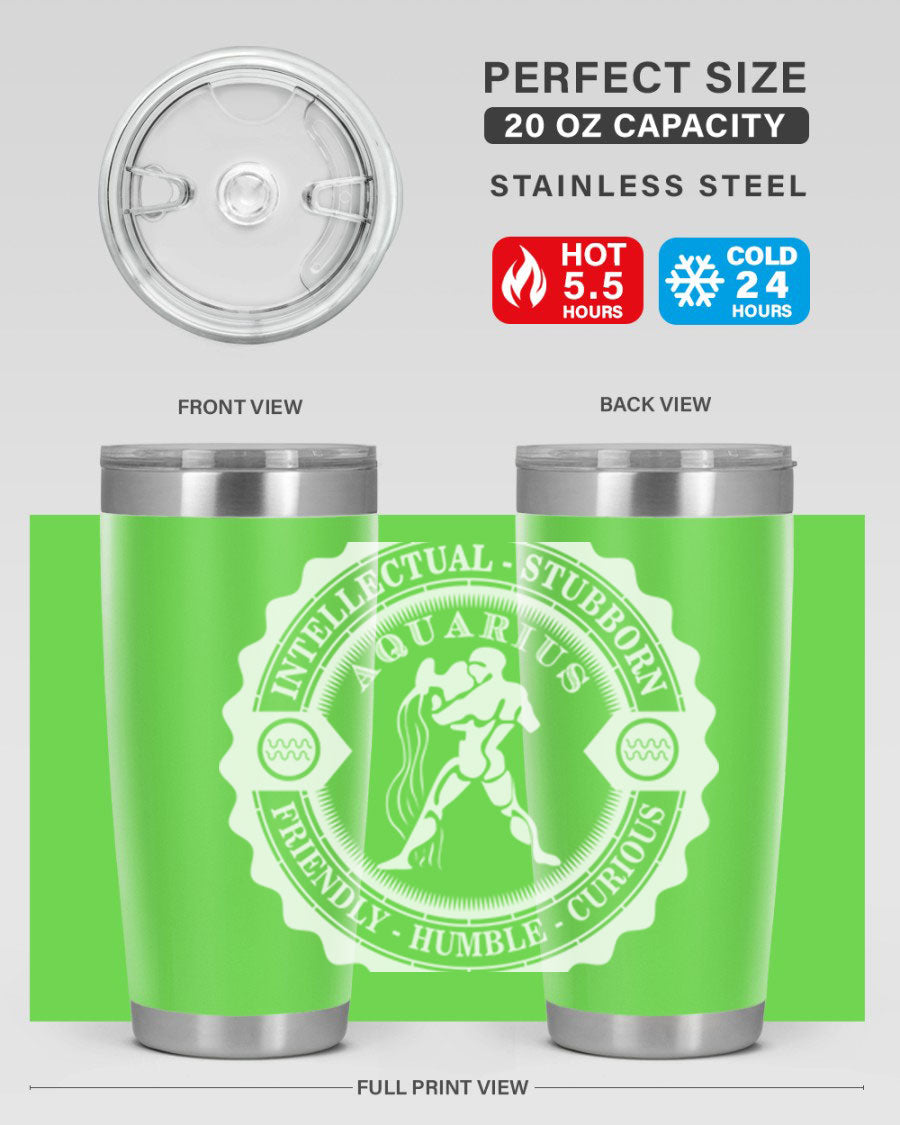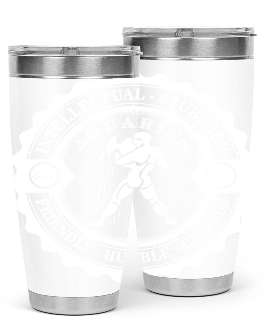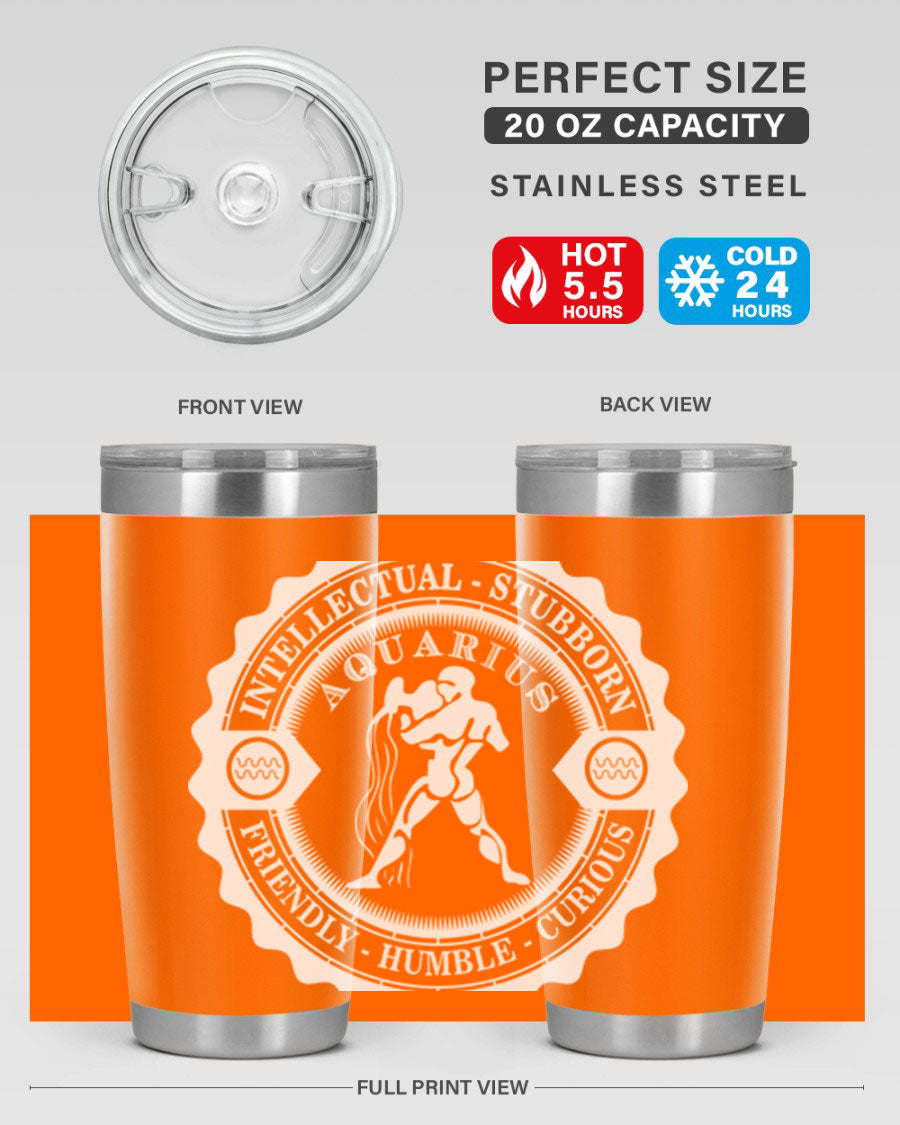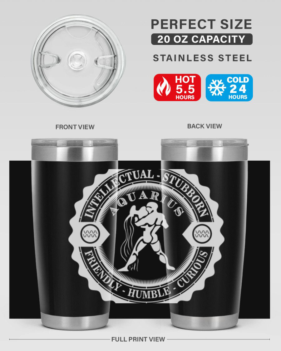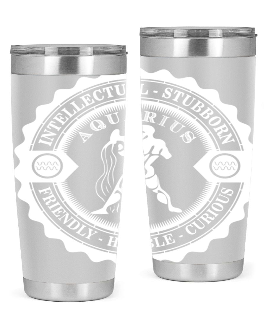 Aquarius 45# Zodiac Tumbler in stainless steel with a drink-thru lid, showcasing its stylish design and functionality.