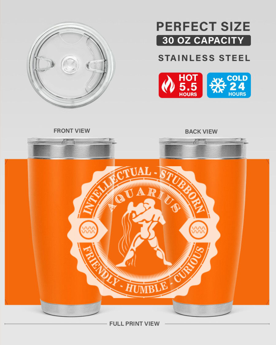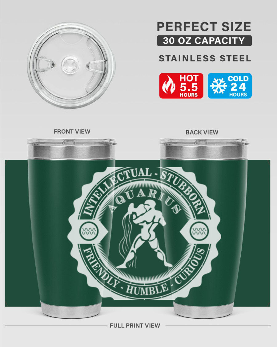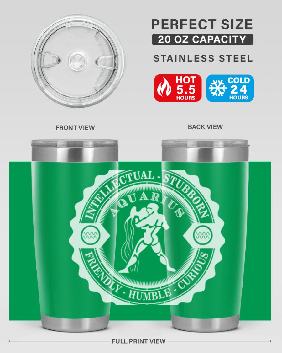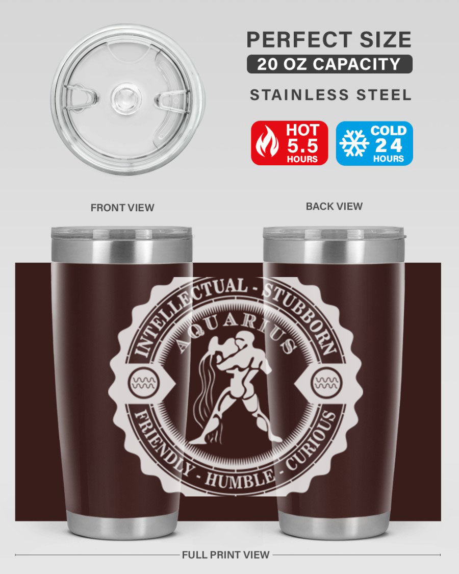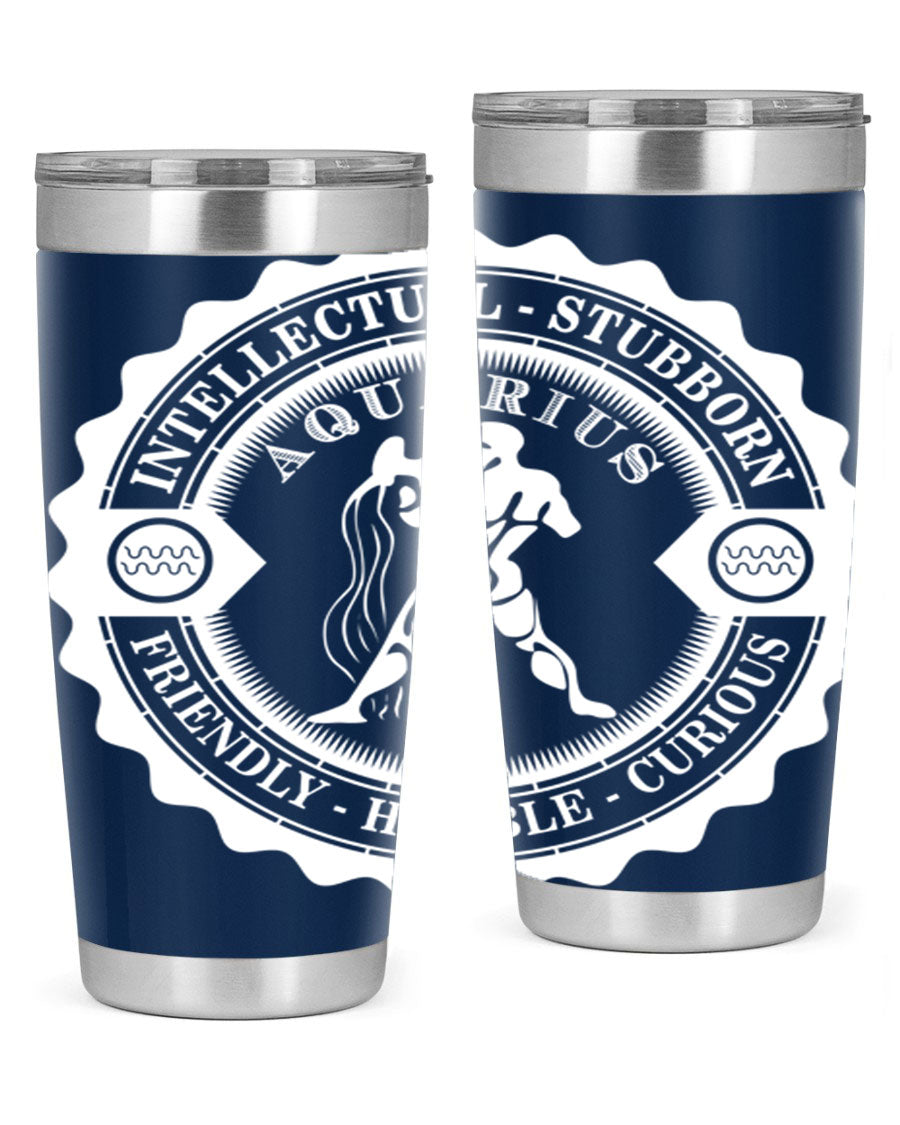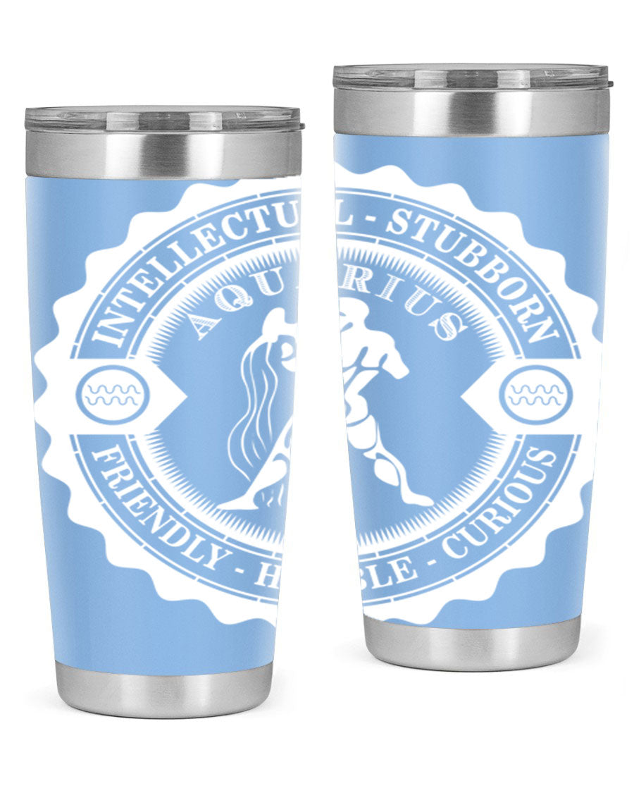 Aquarius 45# Zodiac Tumbler in stainless steel with a drink-thru lid, showcasing its stylish design and functionality.