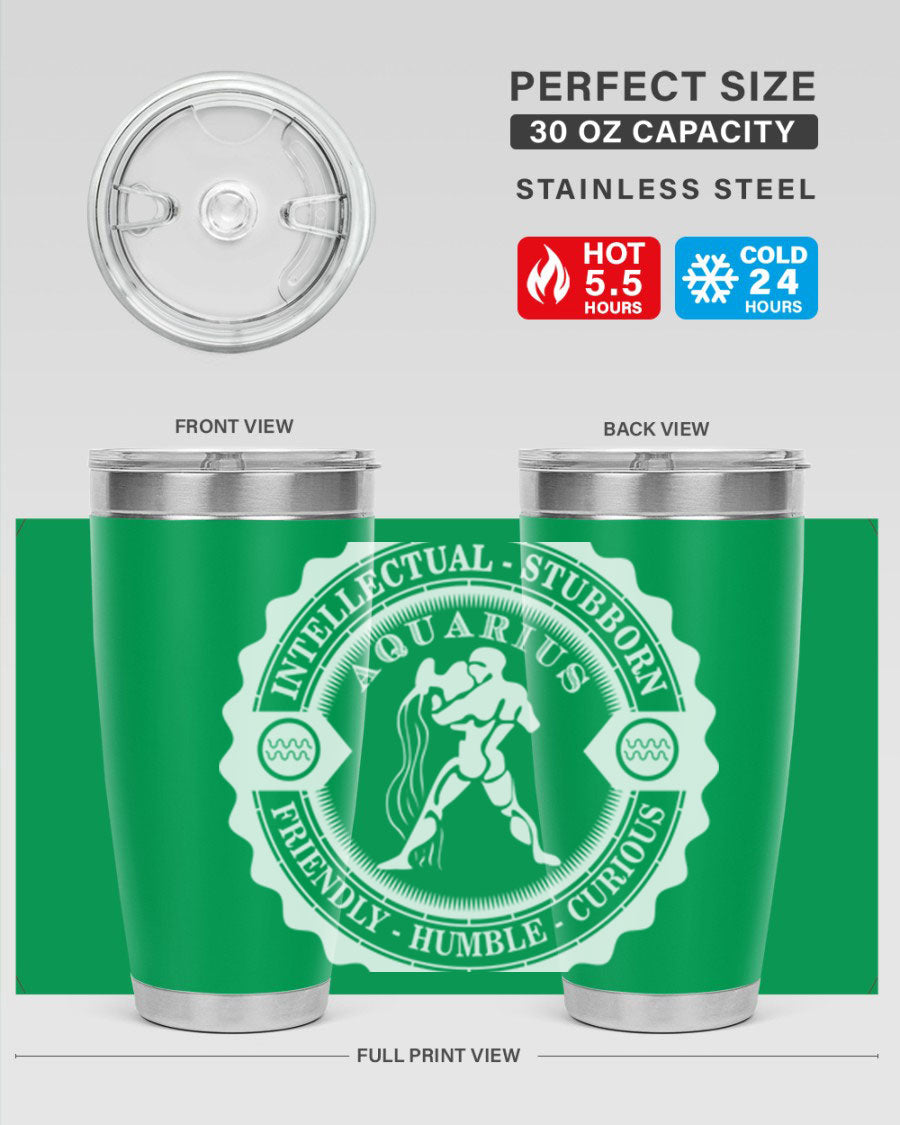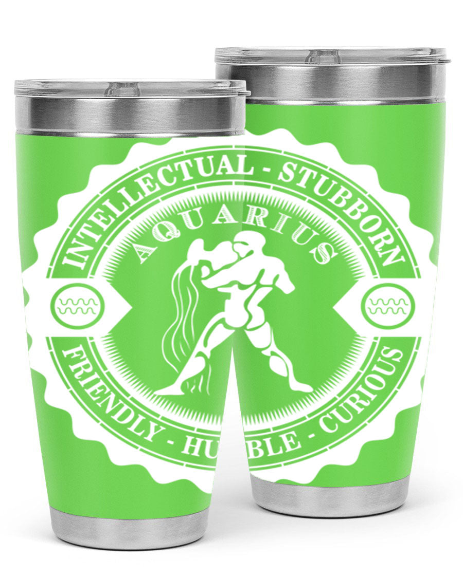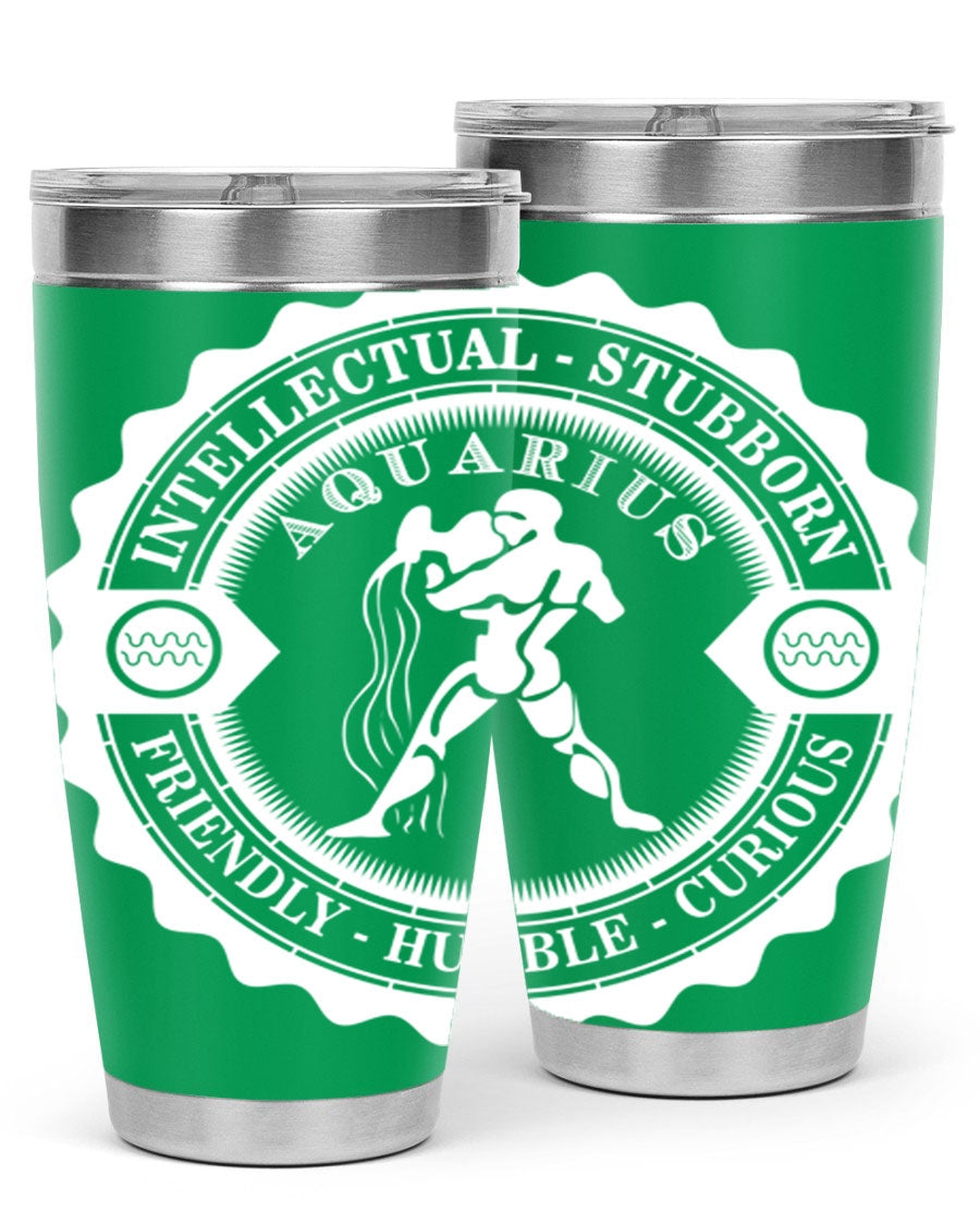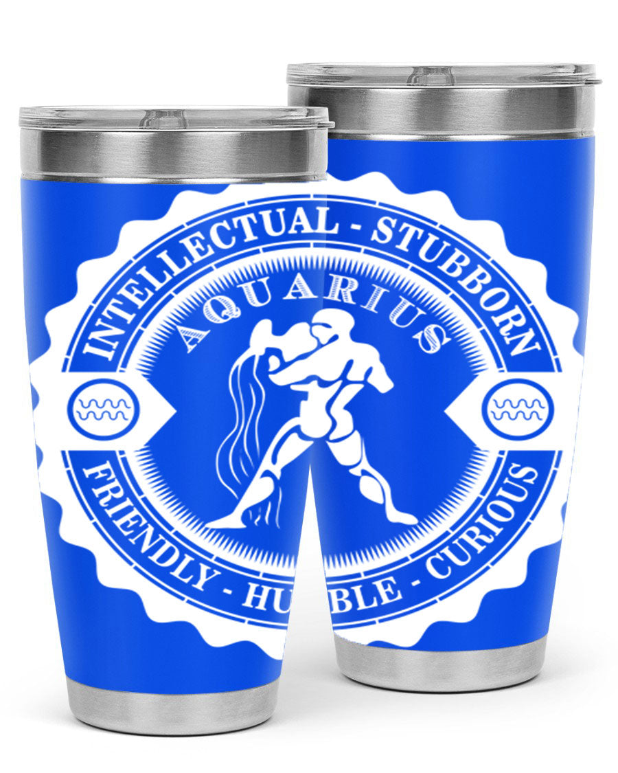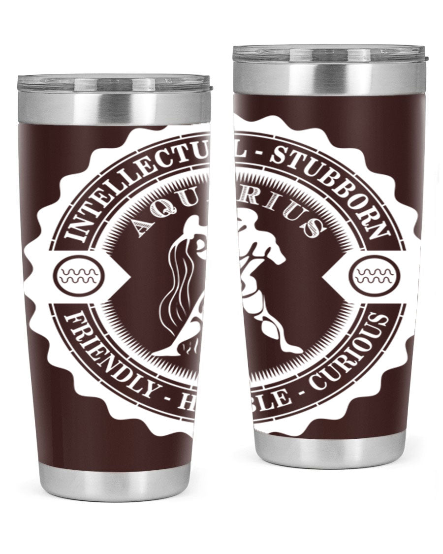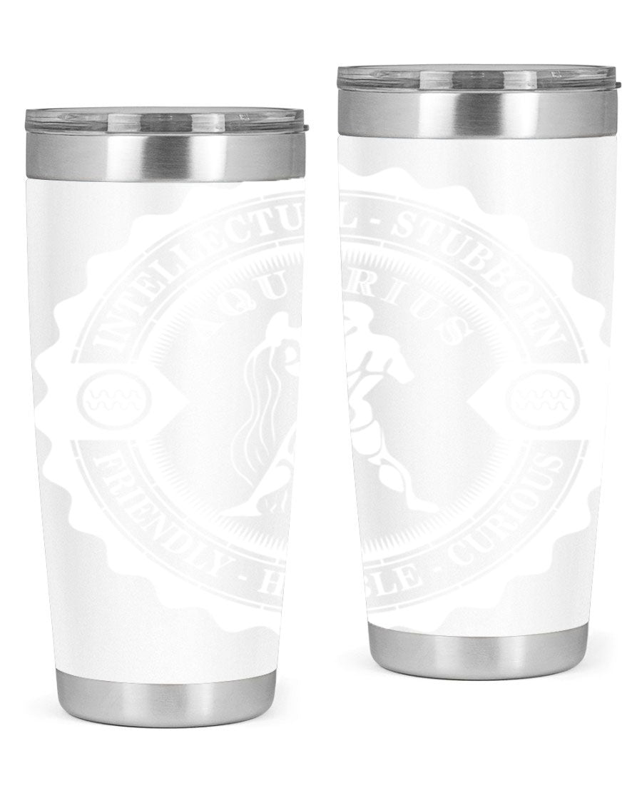 Aquarius 45# Zodiac Tumbler in stainless steel with a drink-thru lid, showcasing its stylish design and functionality.