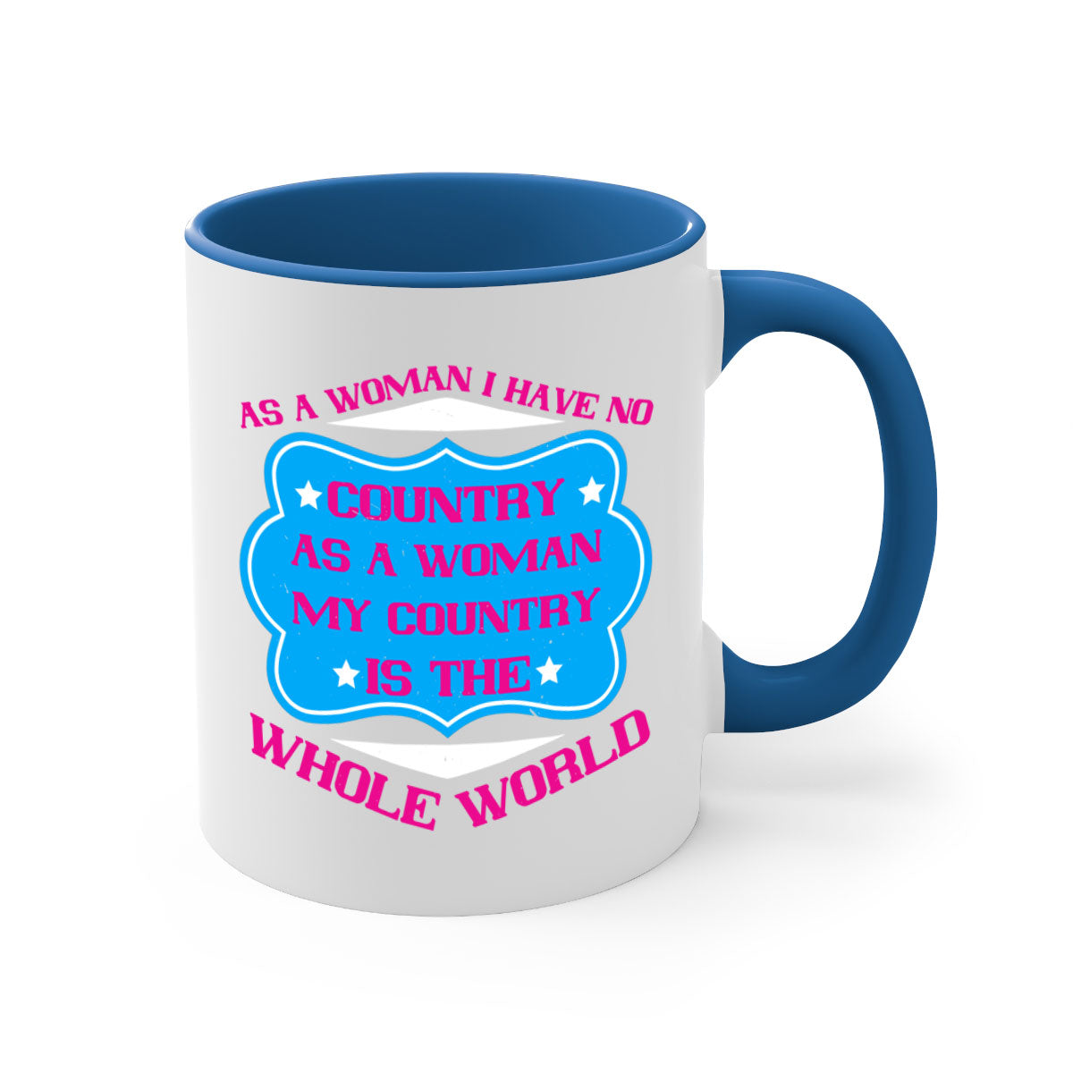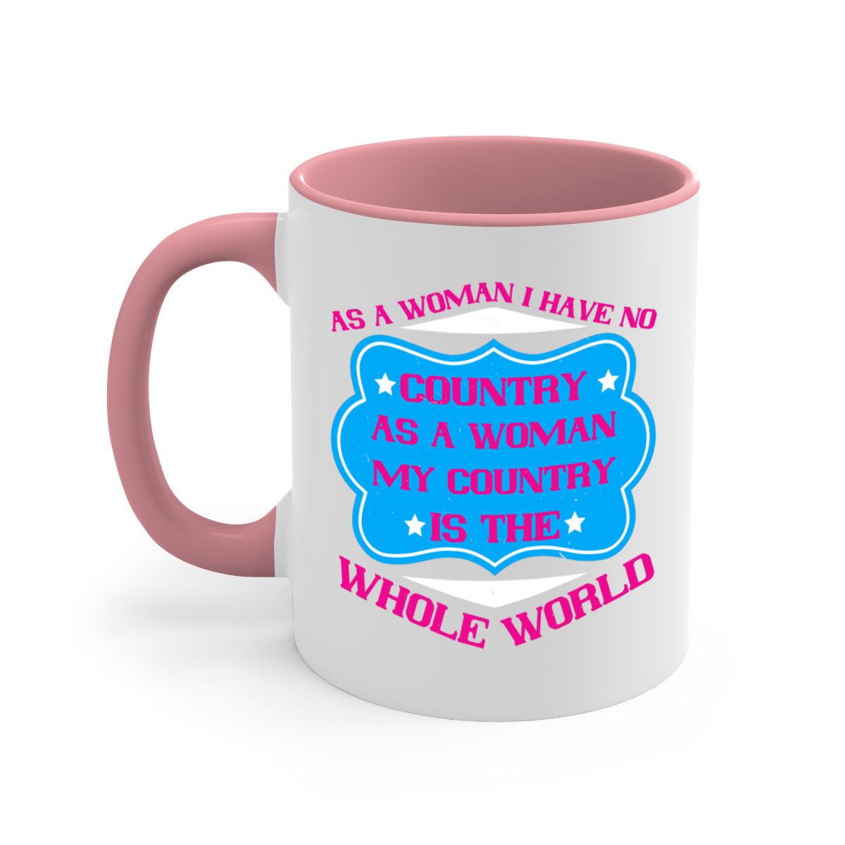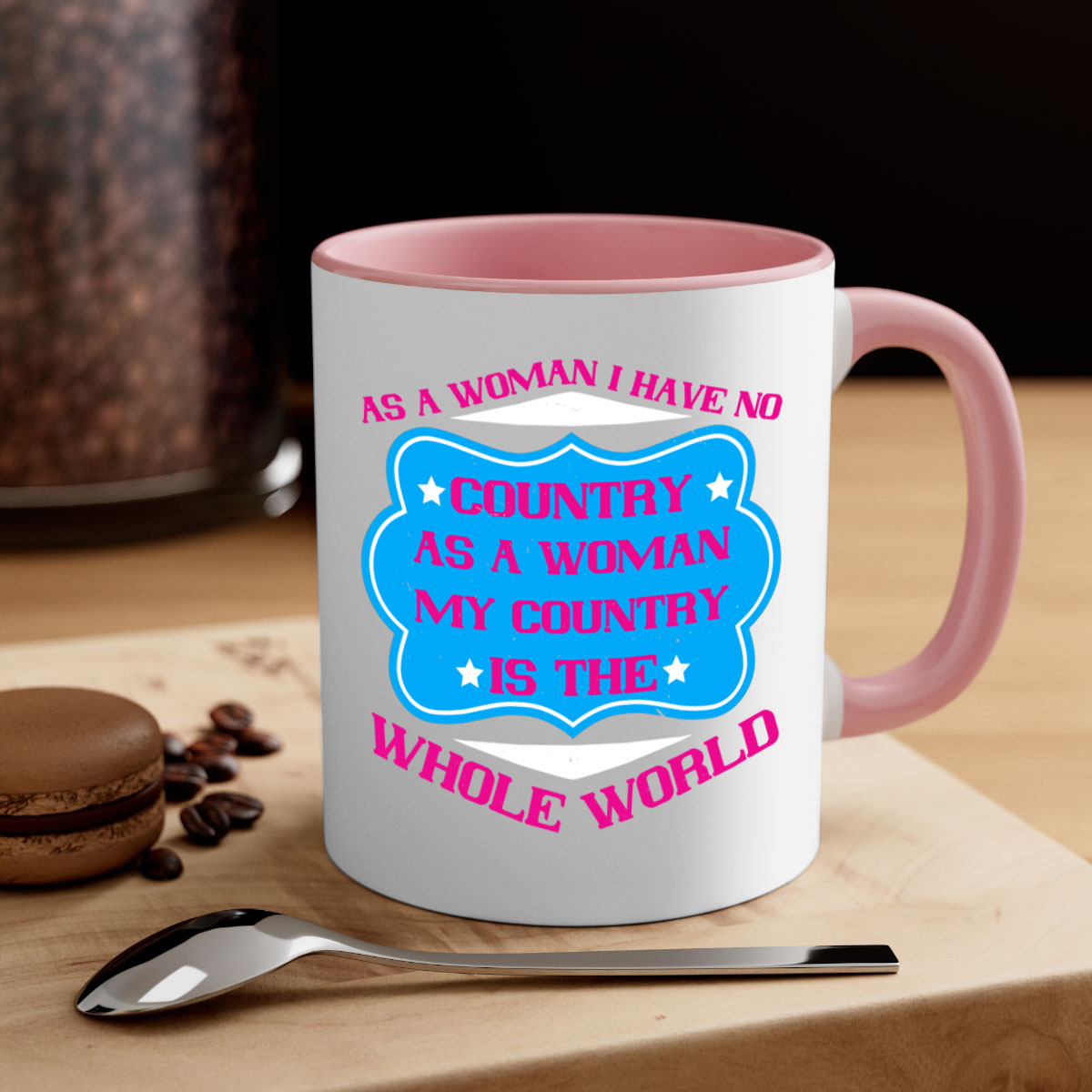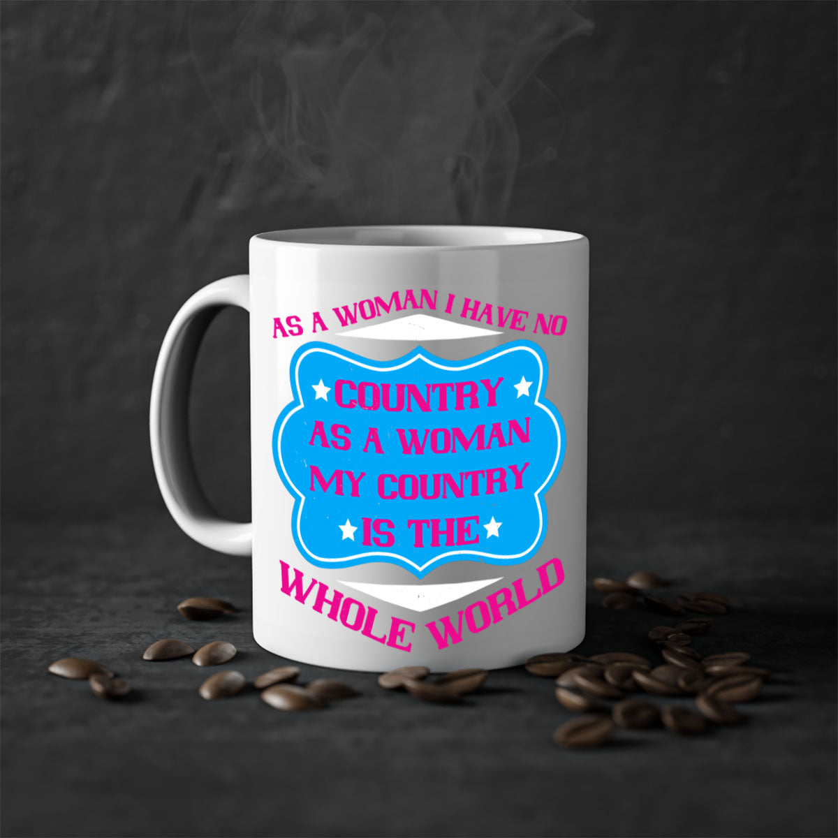 In summary, the 'As a woman I have no country As a woman my country is the whole world' Style 77# Mug is more than just a drinking vessel. It’s a celebration of individuality, style, and global unity. With its stylish design, durable material, and versatile use, it’s the perfect addition to your daily routine. Choose your favorite color and size today and enjoy your beverages in style!