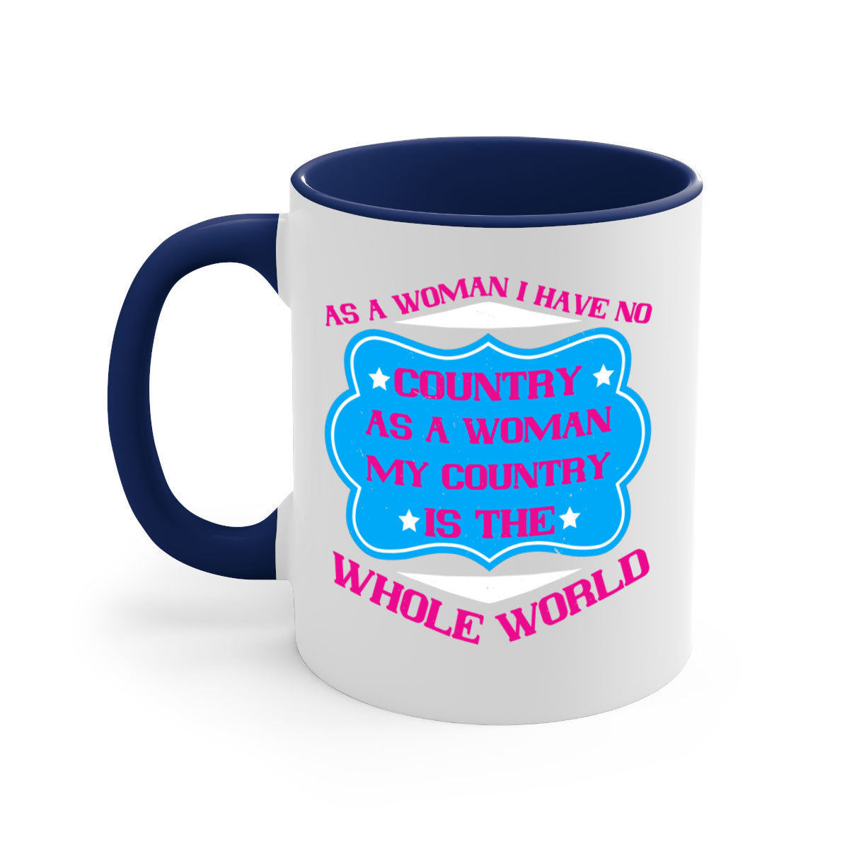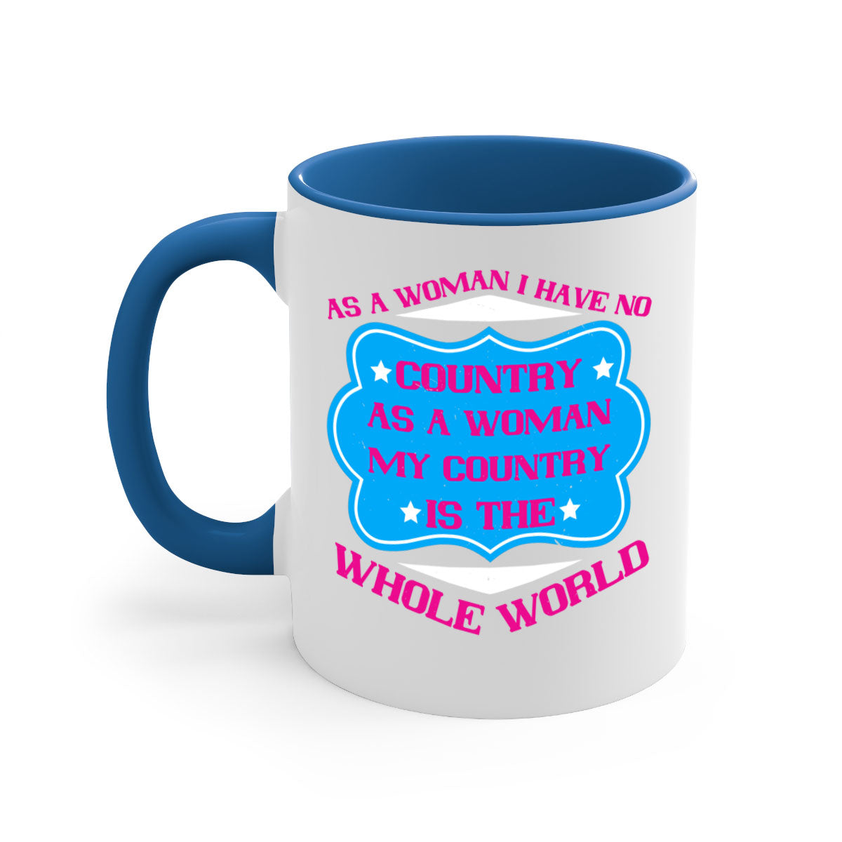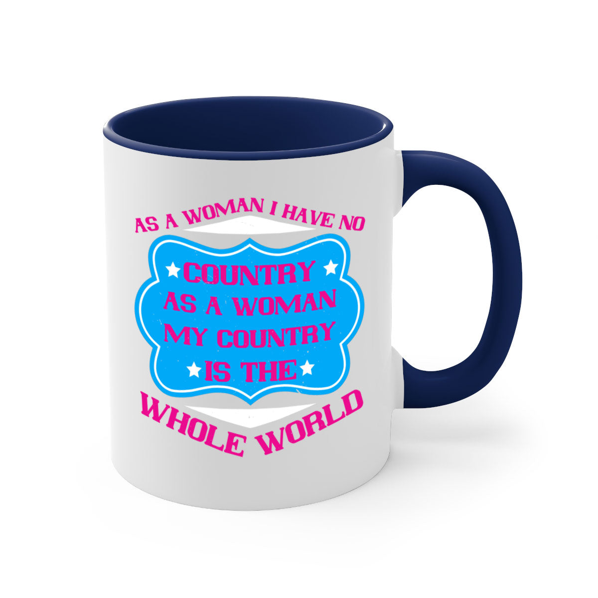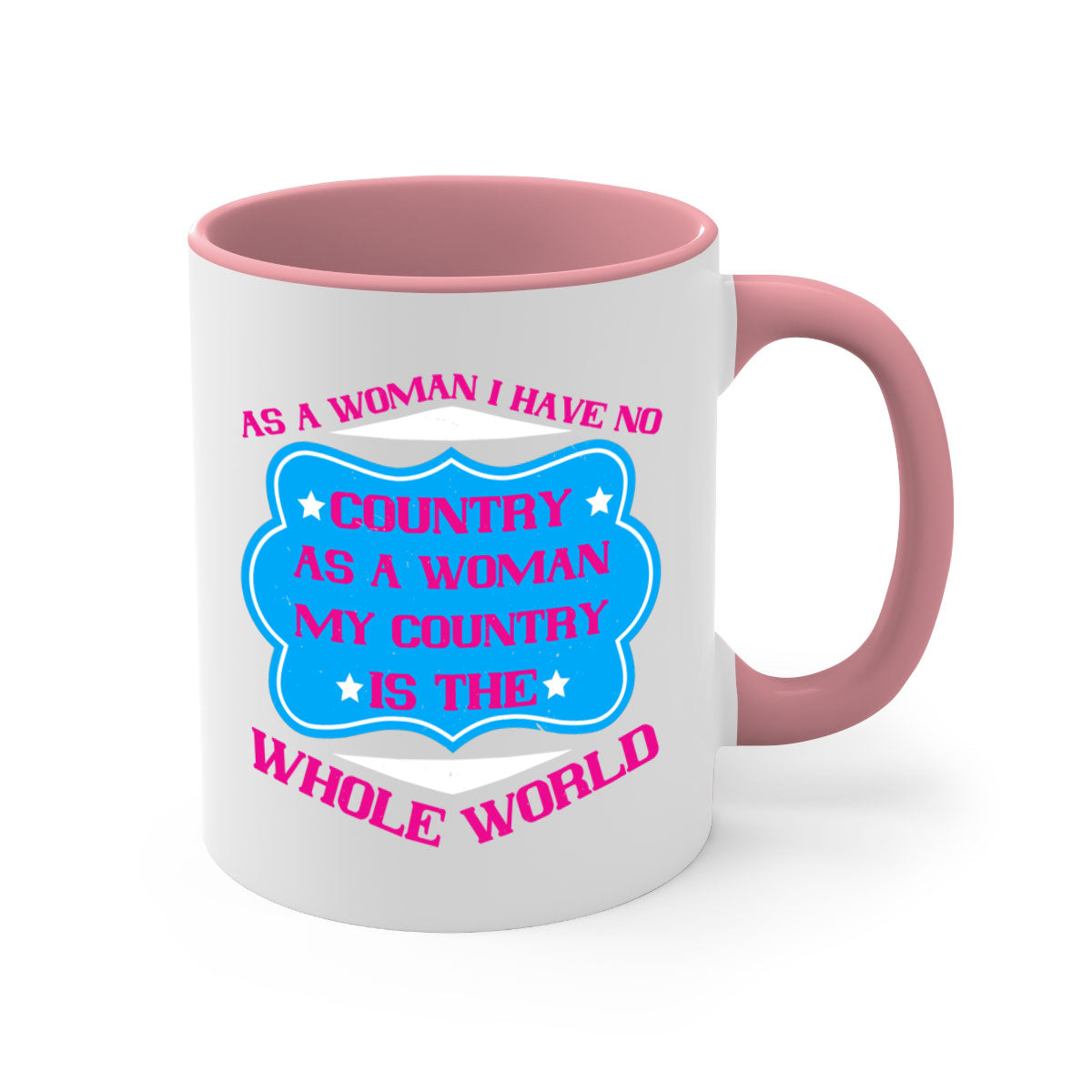 In summary, the 'As a woman I have no country As a woman my country is the whole world' Style 77# Mug is more than just a drinking vessel. It’s a celebration of individuality, style, and global unity. With its stylish design, durable material, and versatile use, it’s the perfect addition to your daily routine. Choose your favorite color and size today and enjoy your beverages in style!
