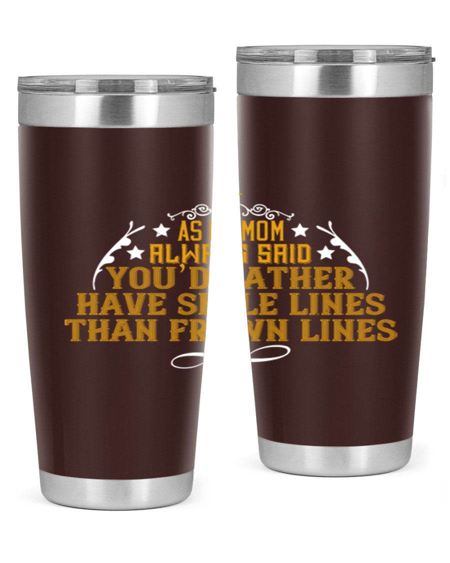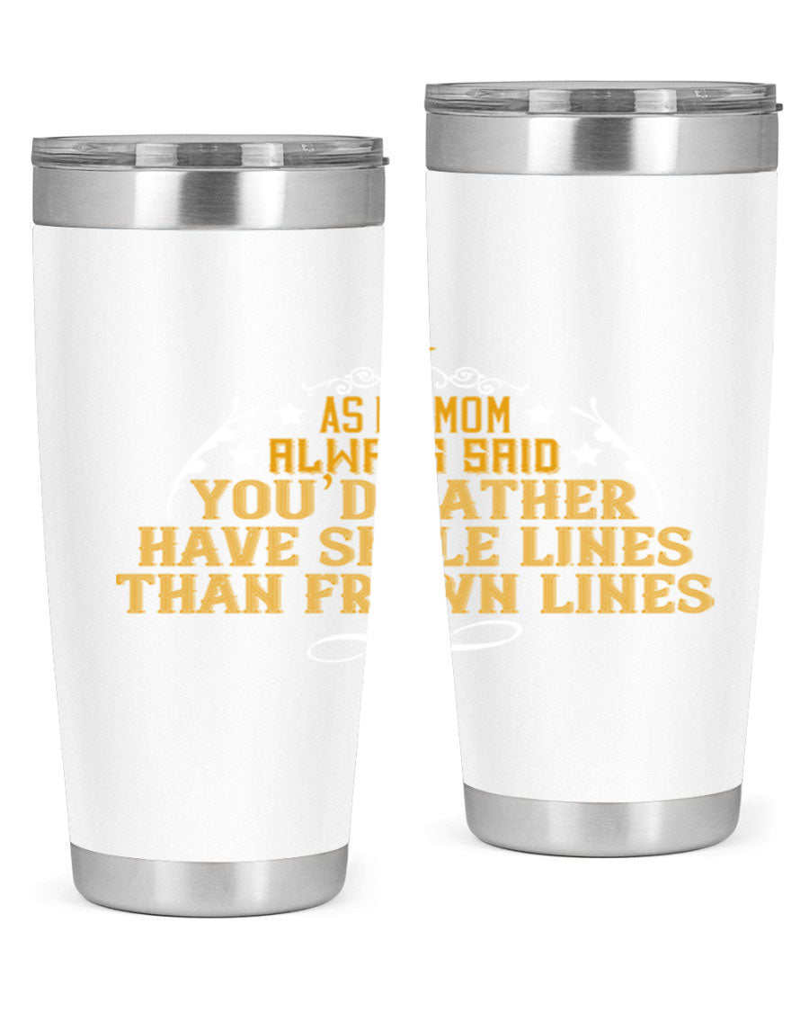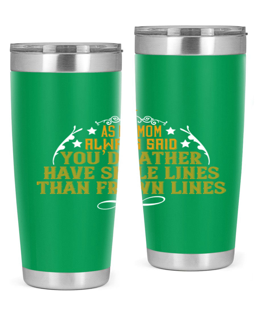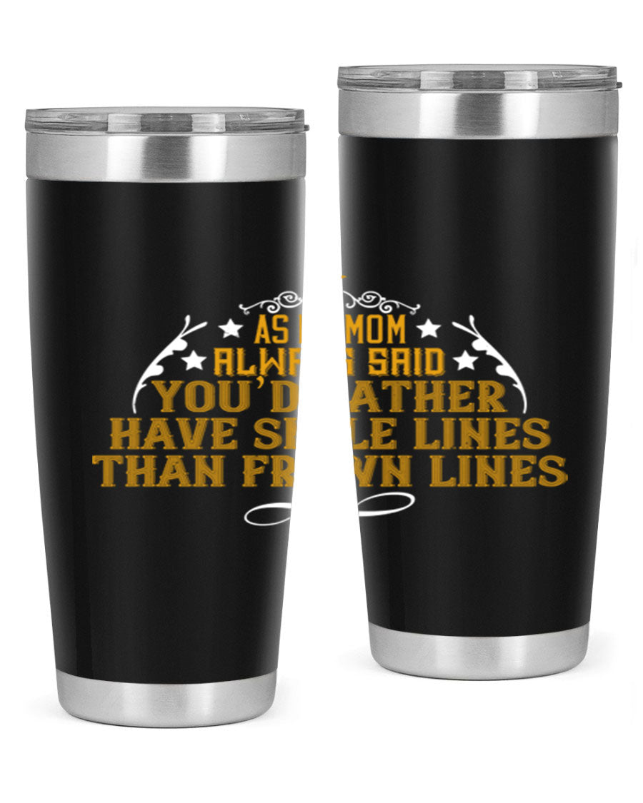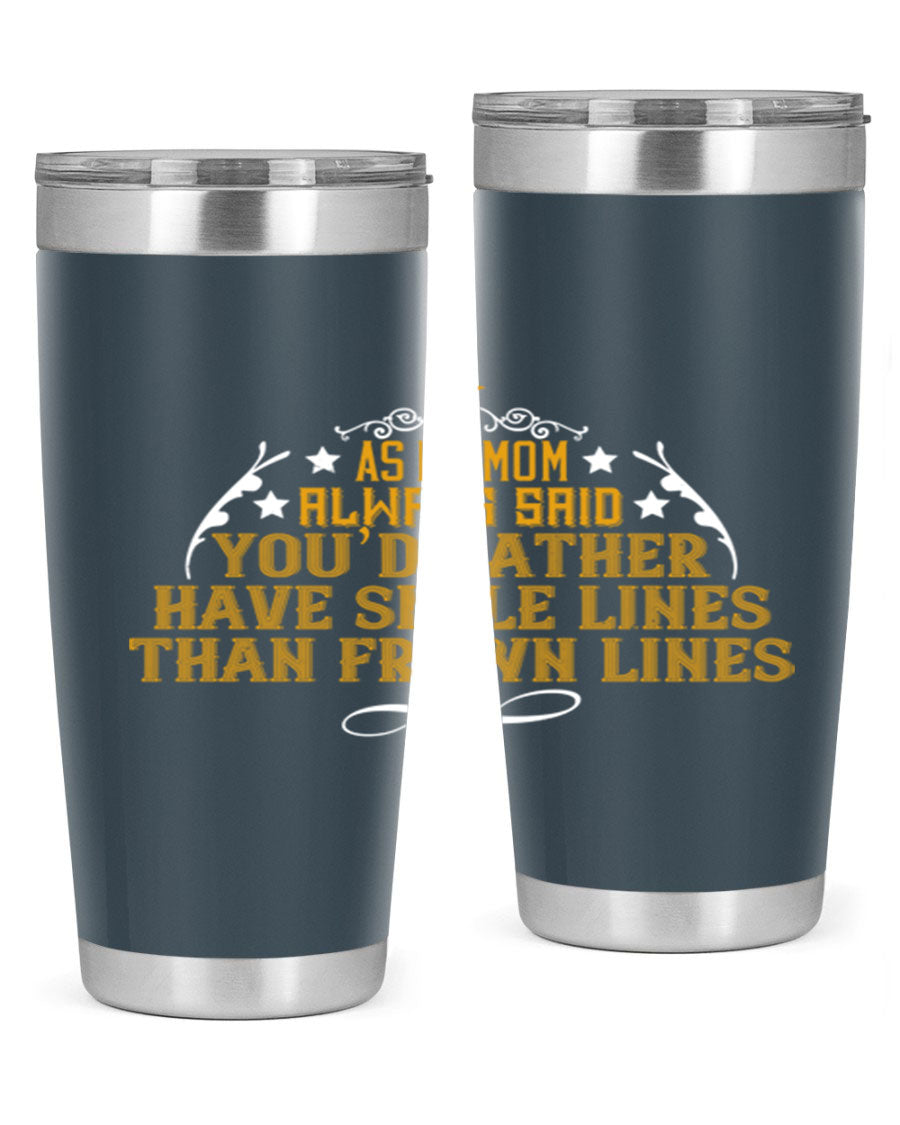 The 'As My Mom Always Said' tumbler comes with a press-in, drink-thru lid that allows for easy sipping without the hassle of spills. Its design fits perfectly in most cup holders, making it an ideal companion for road trips, commutes, or outdoor adventures. Whether you're heading to work or enjoying a day at the park, this tumbler is designed for convenience.