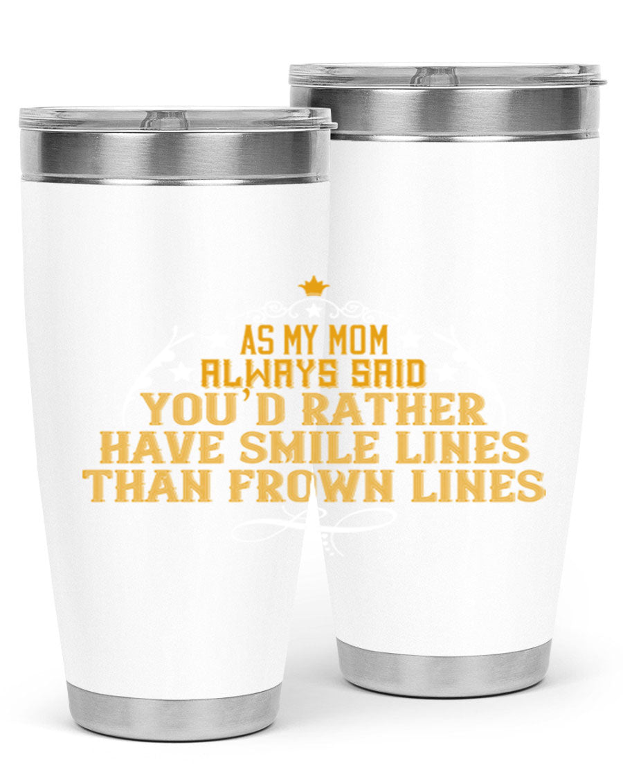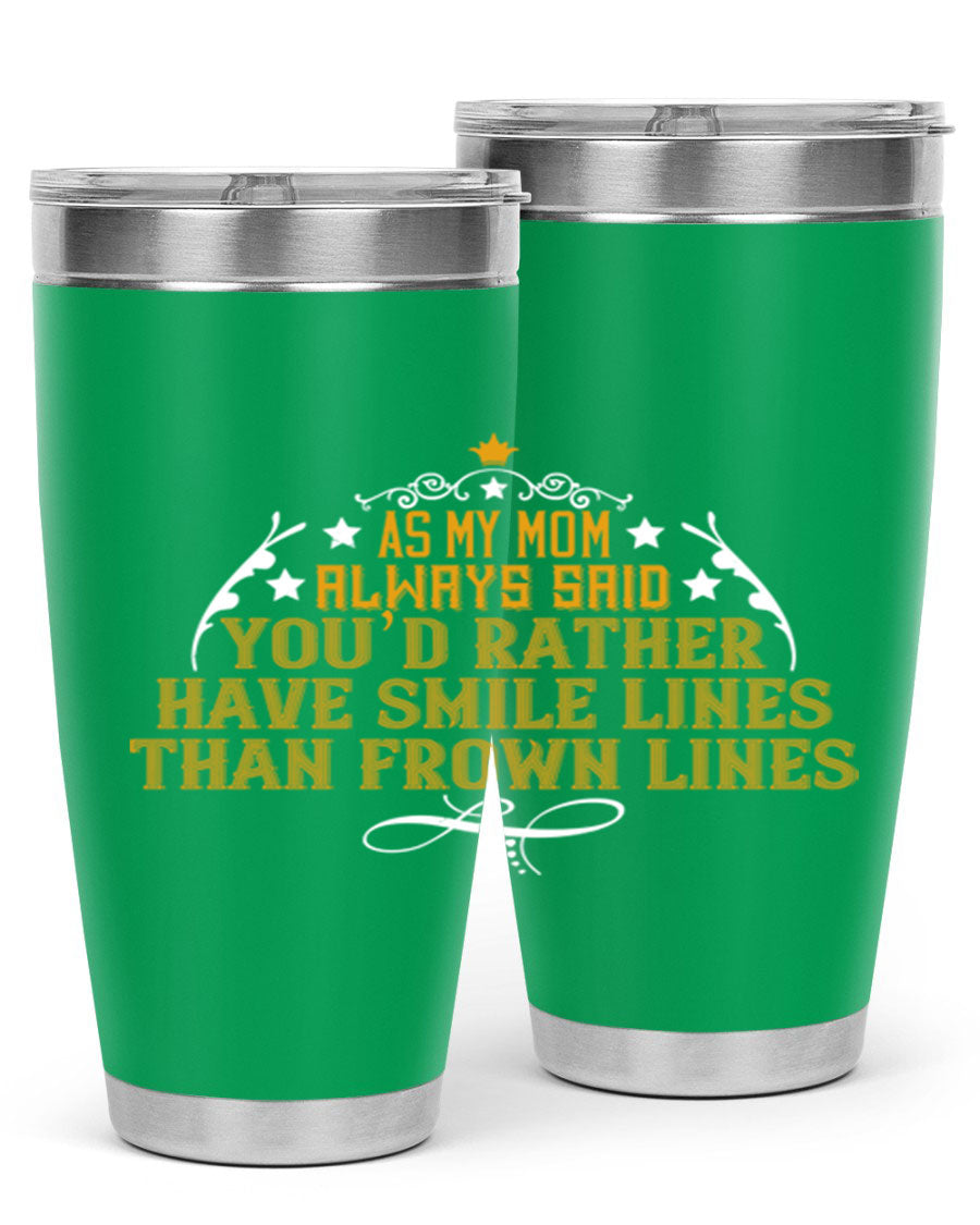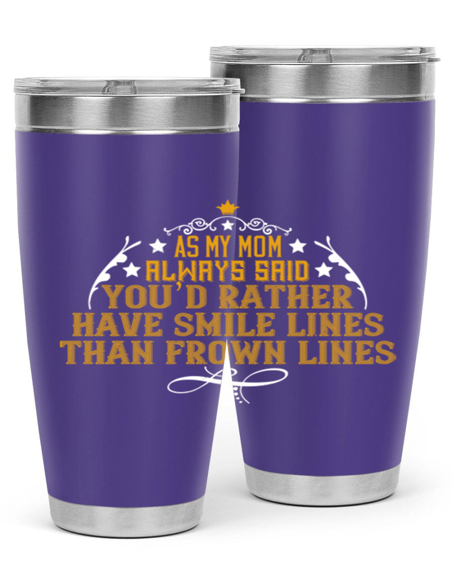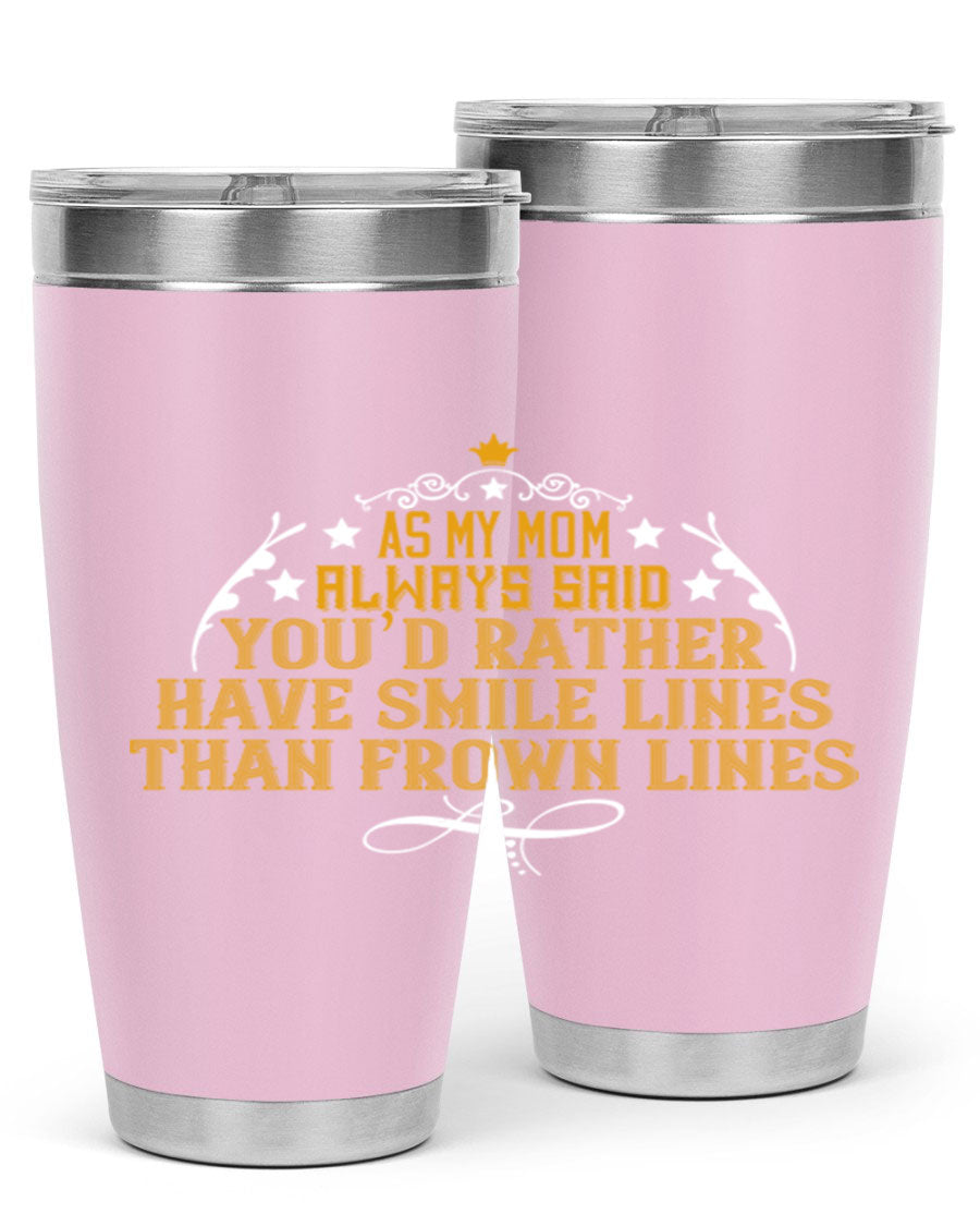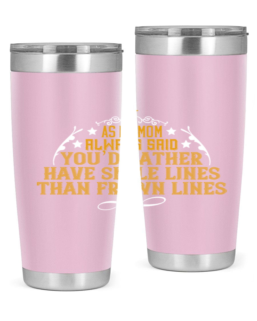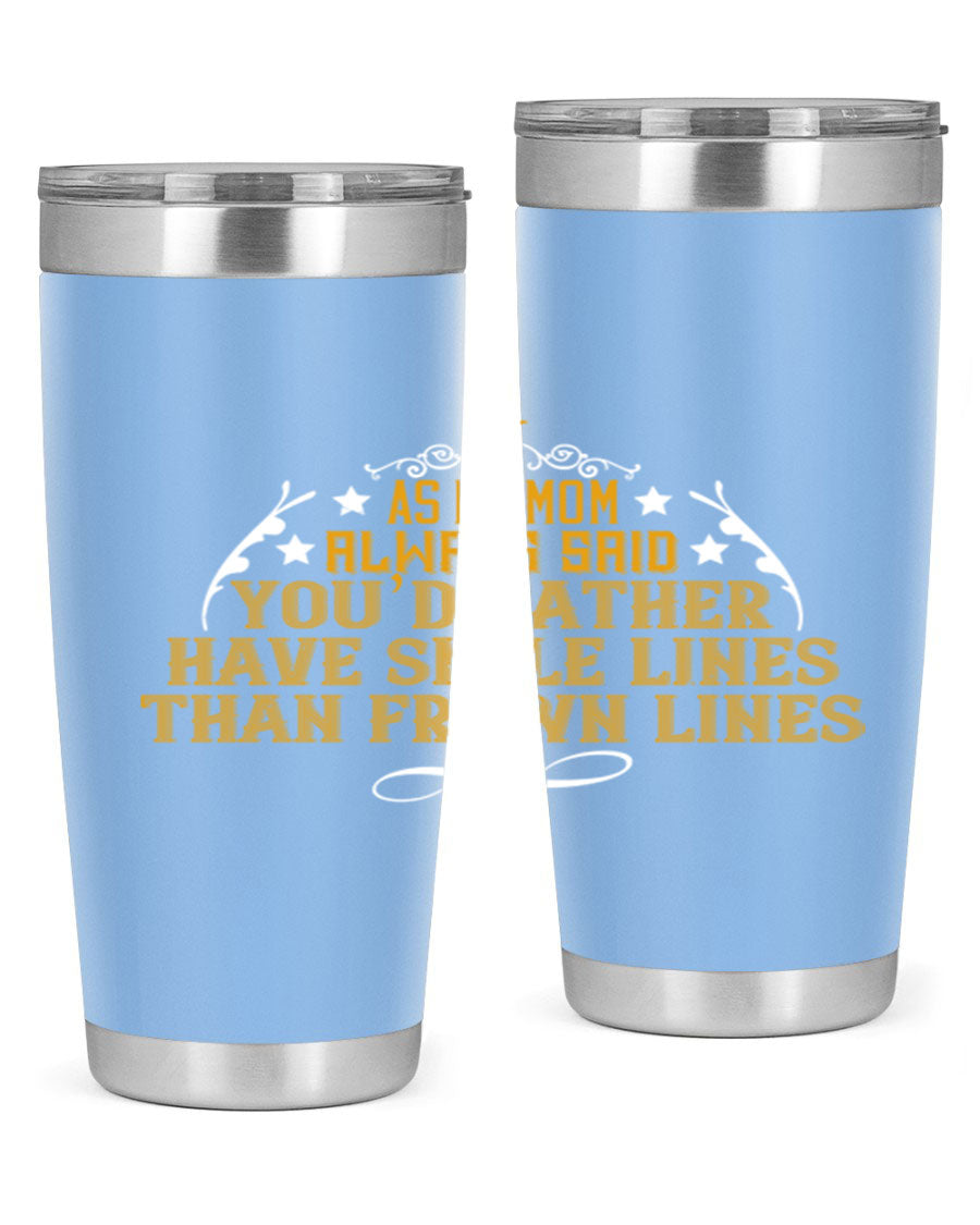 The 'As My Mom Always Said' tumbler comes with a press-in, drink-thru lid that allows for easy sipping without the hassle of spills. Its design fits perfectly in most cup holders, making it an ideal companion for road trips, commutes, or outdoor adventures. Whether you're heading to work or enjoying a day at the park, this tumbler is designed for convenience.