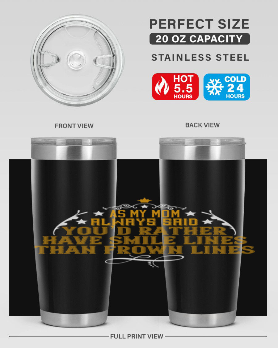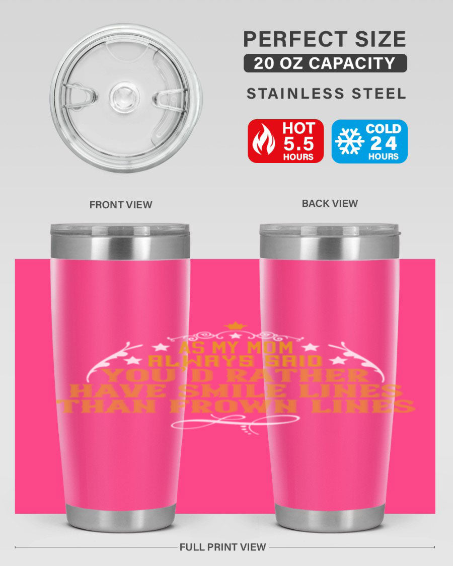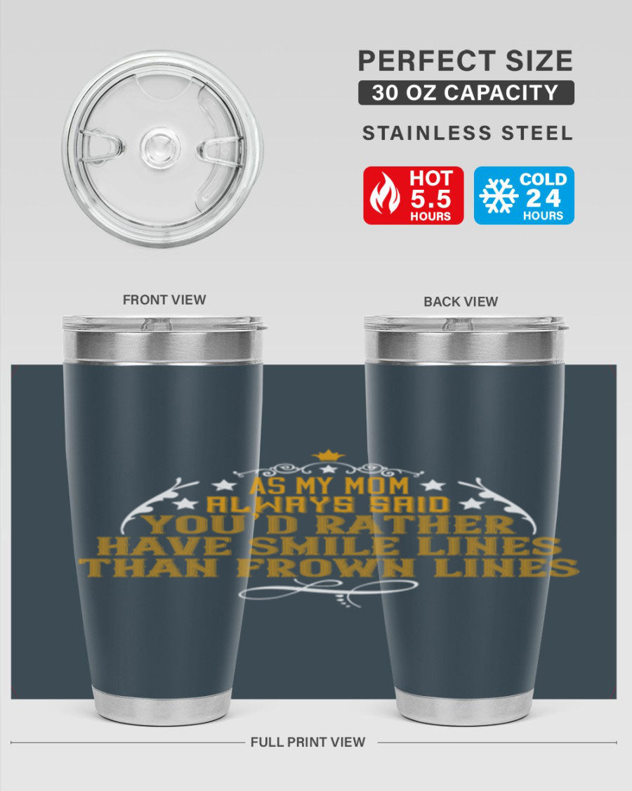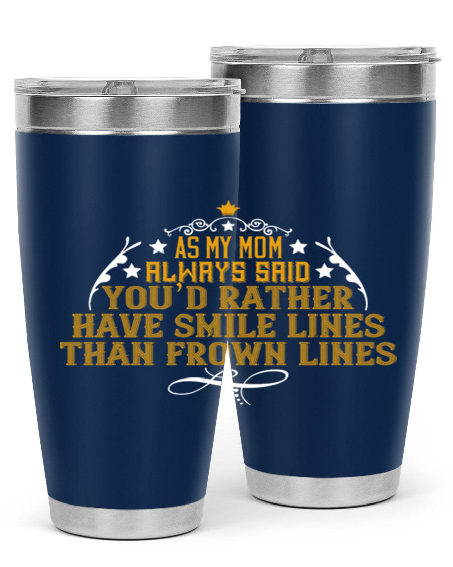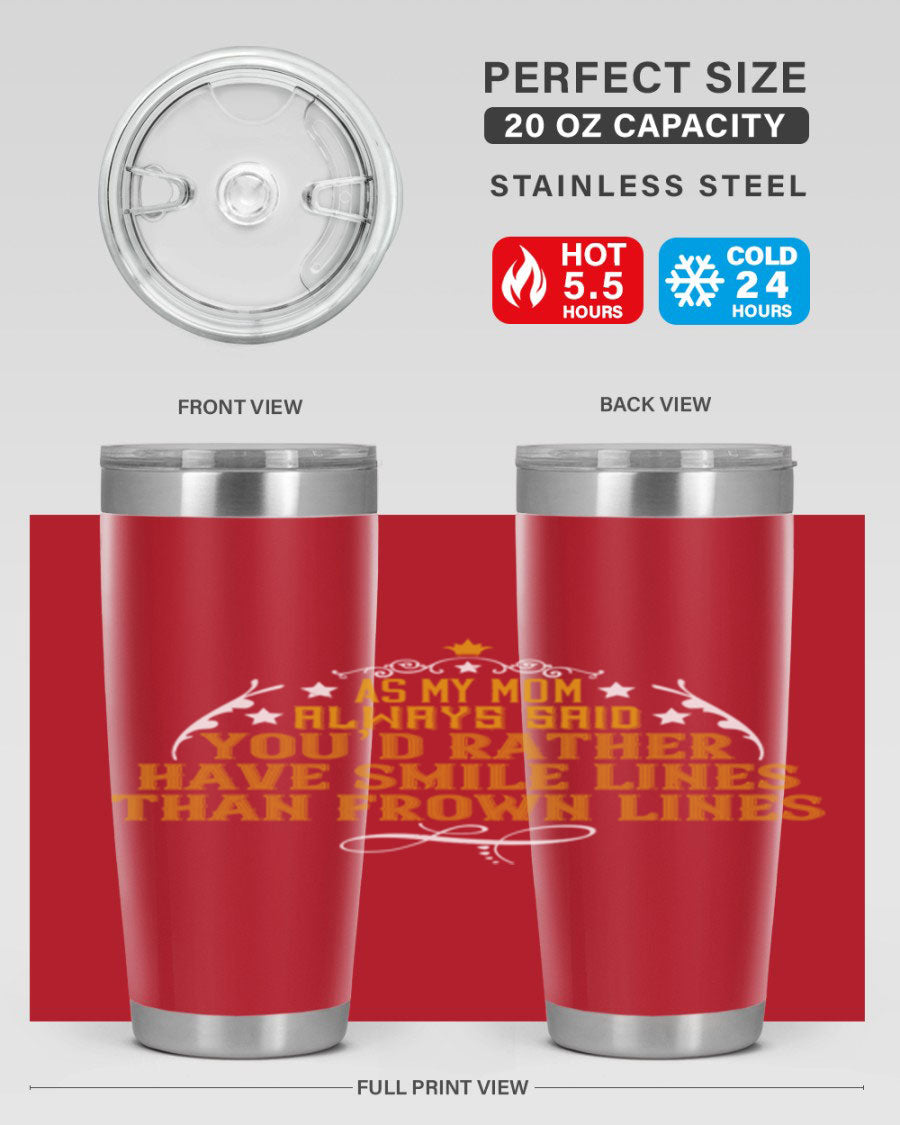 The 'As My Mom Always Said' tumbler comes with a press-in, drink-thru lid that allows for easy sipping without the hassle of spills. Its design fits perfectly in most cup holders, making it an ideal companion for road trips, commutes, or outdoor adventures. Whether you're heading to work or enjoying a day at the park, this tumbler is designed for convenience.